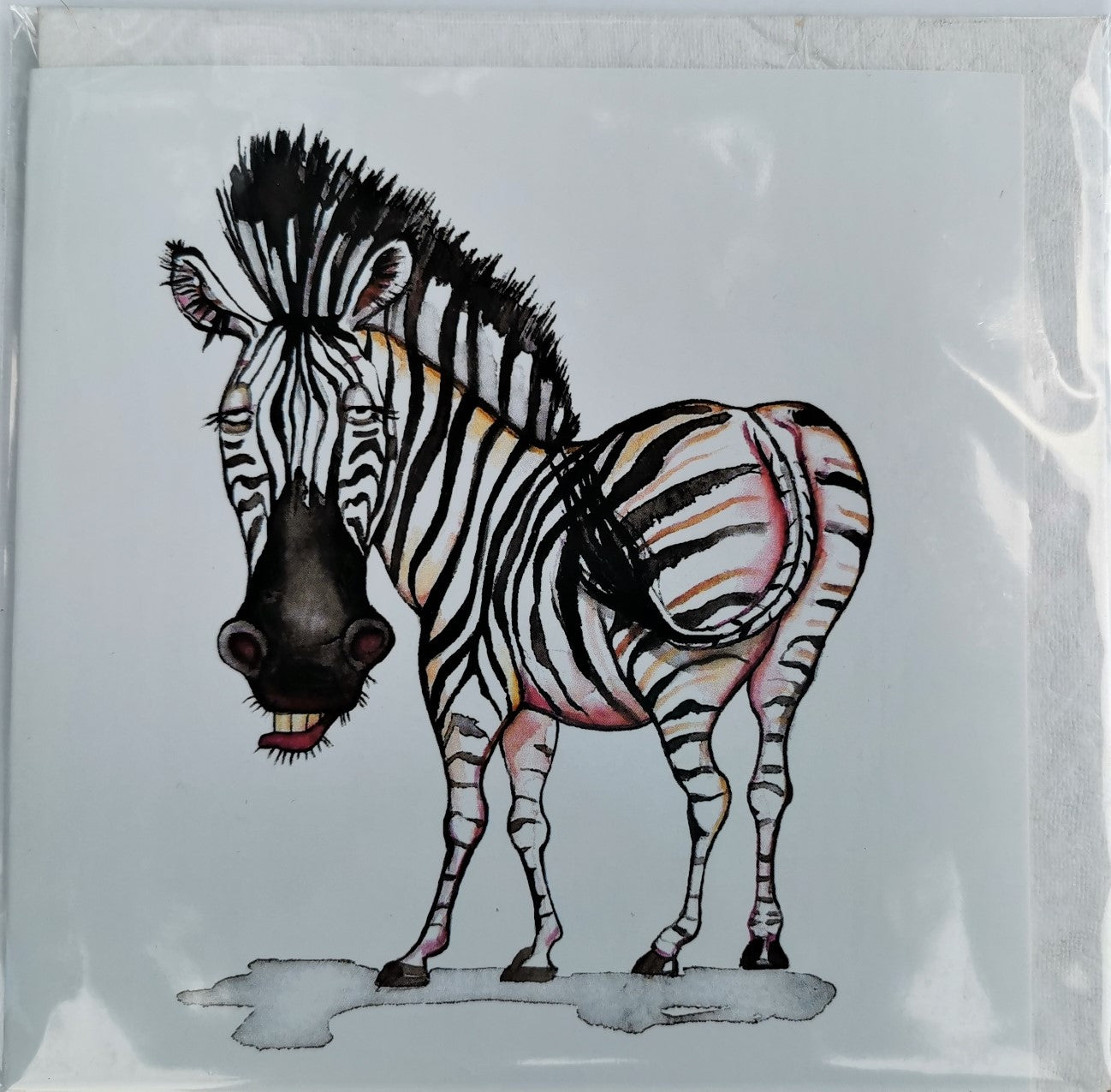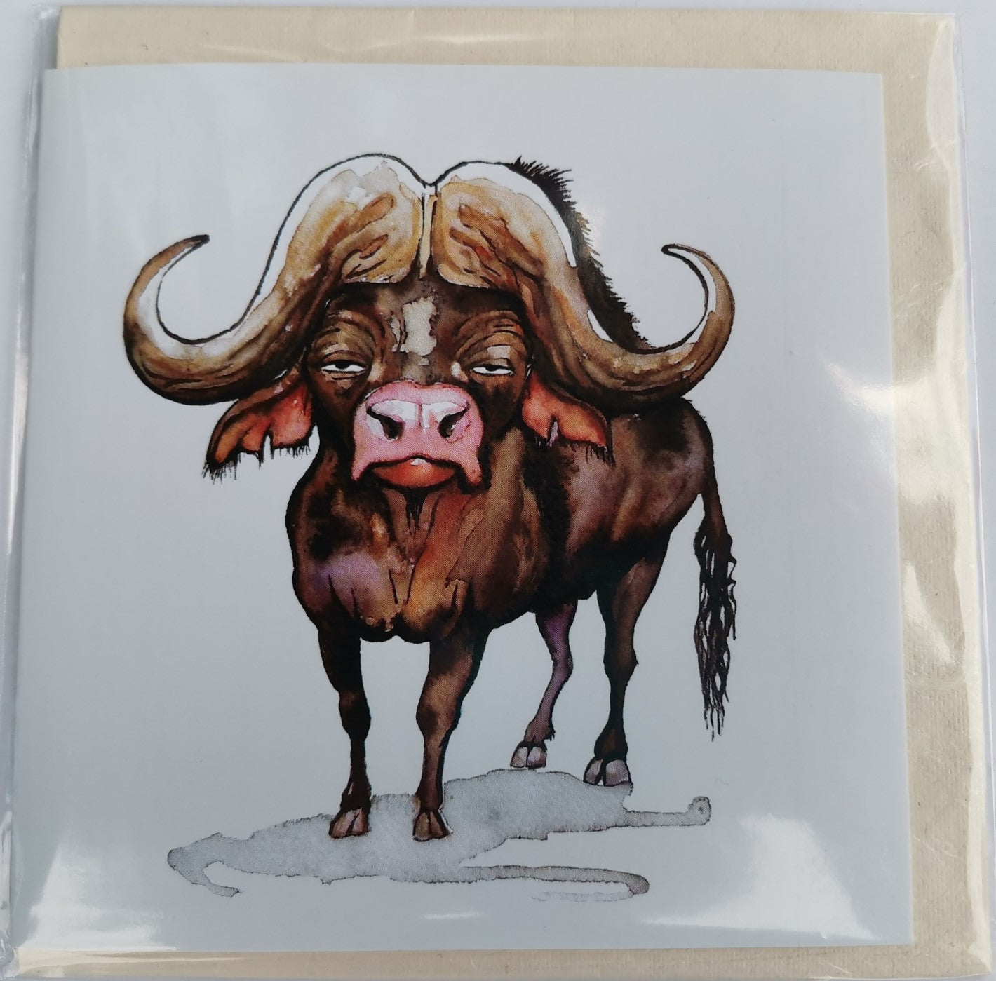 These cards are handmade and come with a 140mm square envelopes are bundled with the 130mm x 130mm square cards in a polyprop bag. The polypropylene bag is fastened with a sticker that reveals the card's interior has been left empty.