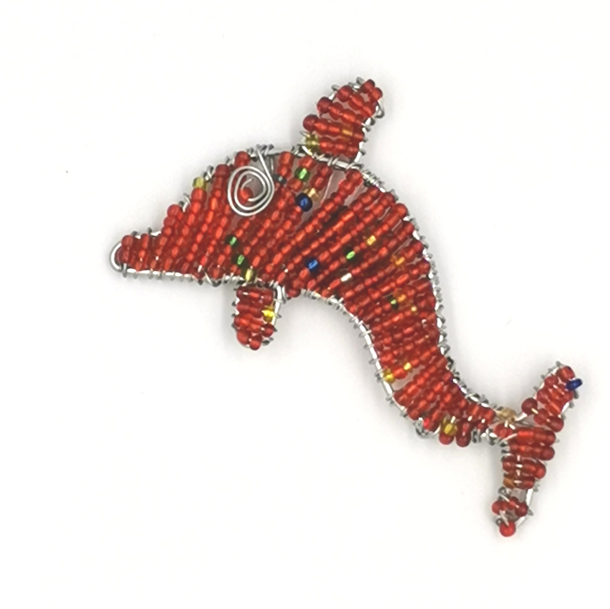Beaded and wire dolphin fridge magnet.