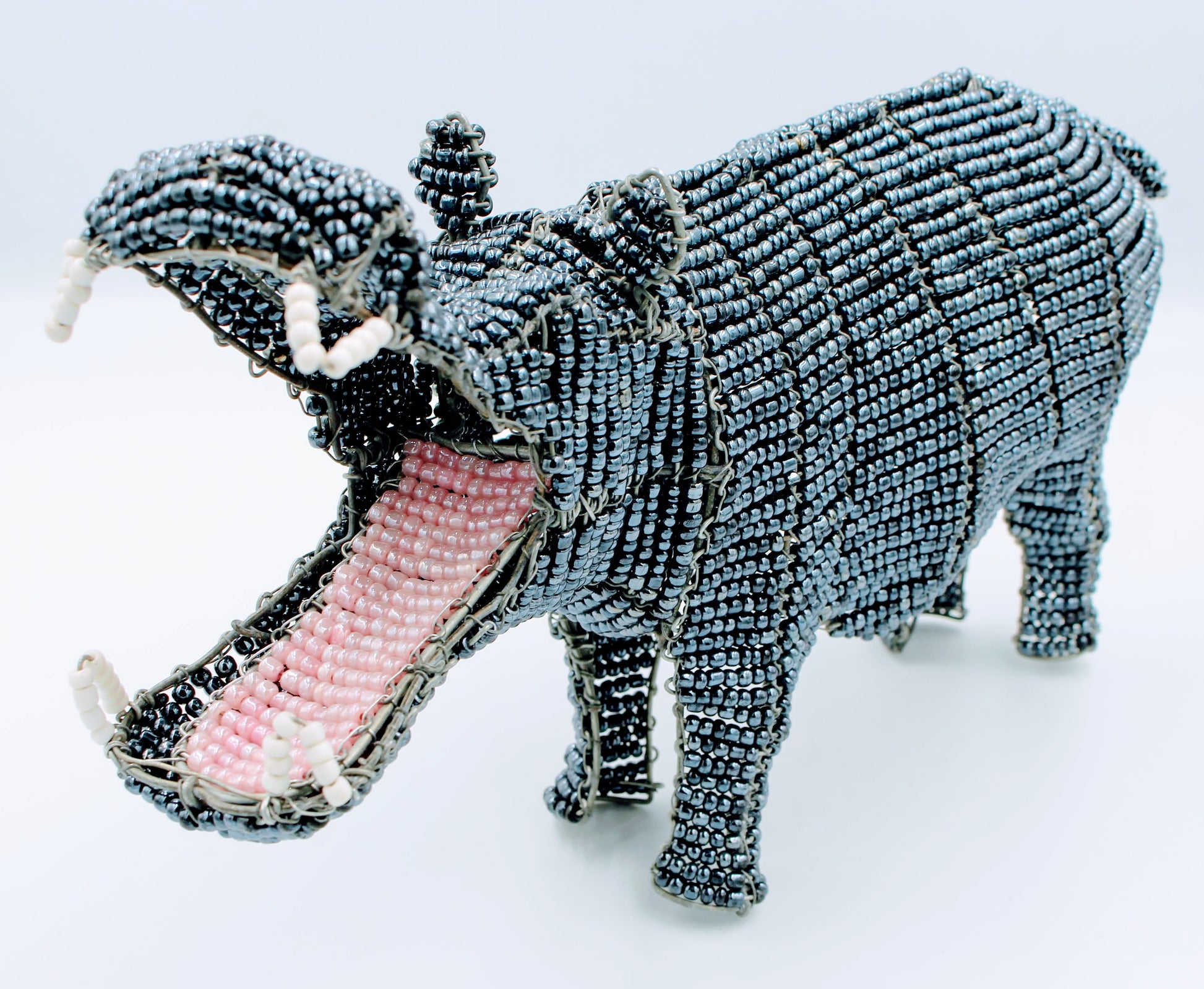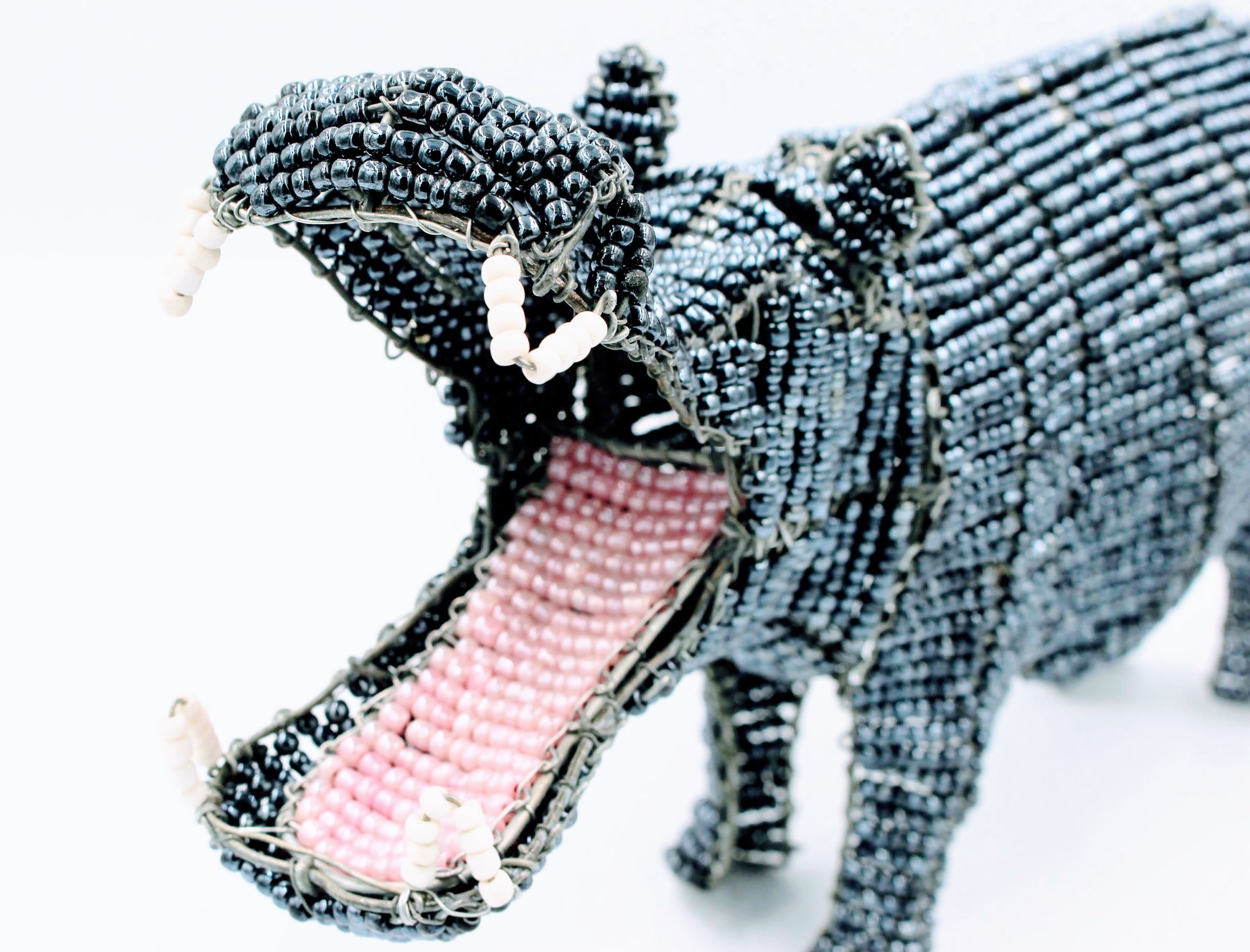 Beautifully hand-beaded large hippo with beautiful pink tongue detail.
