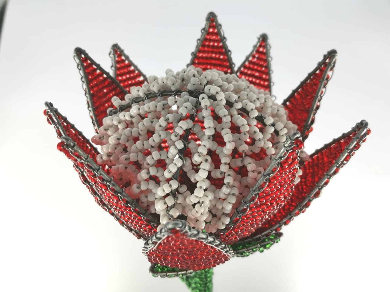The Beaded Protea is a stunning work of art that celebrates the beauty of South Africa's national flower. Handcrafted by skilled artisans in the heart of the country, this intricate piece is made using traditional beading techniques that have been passed down for generations.