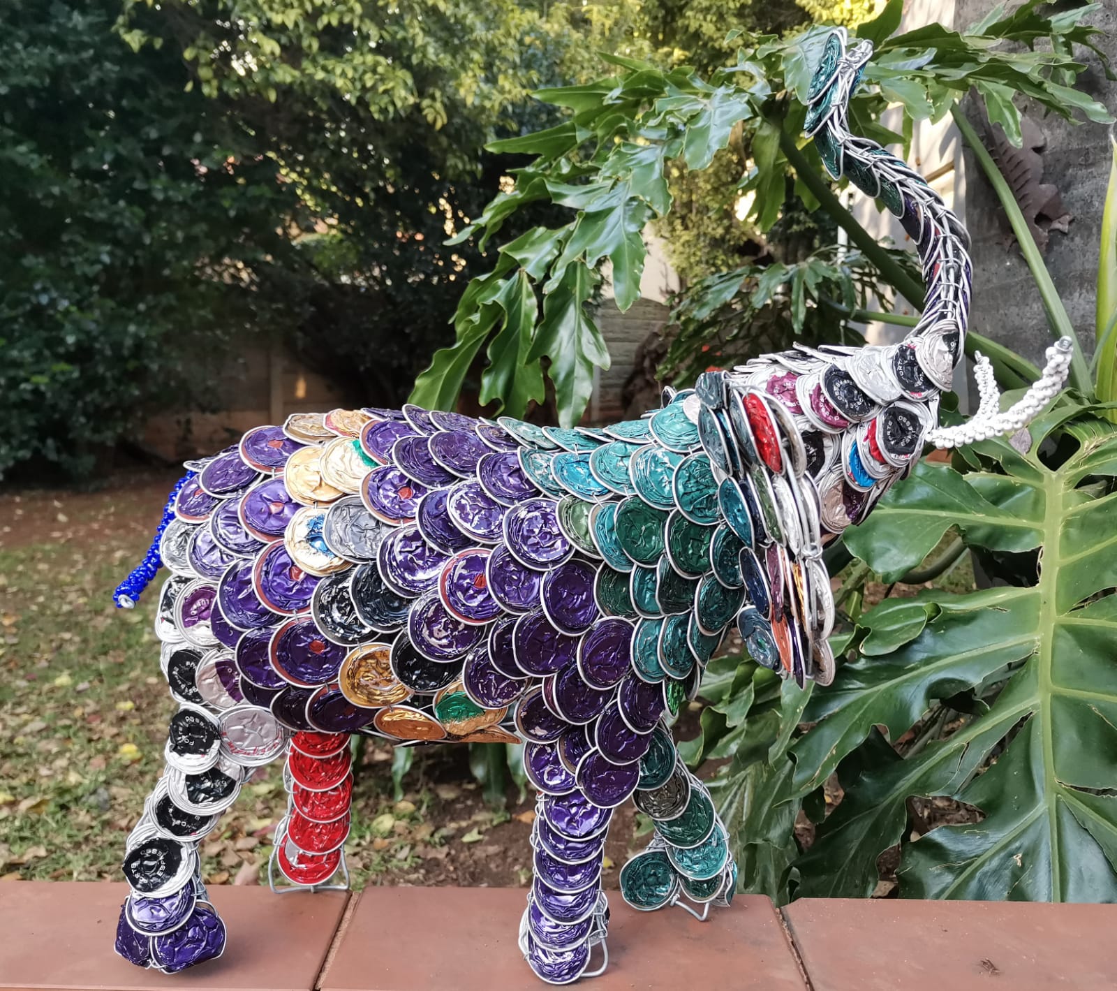Made from wire, beads and recycled Nespresso coffee pods