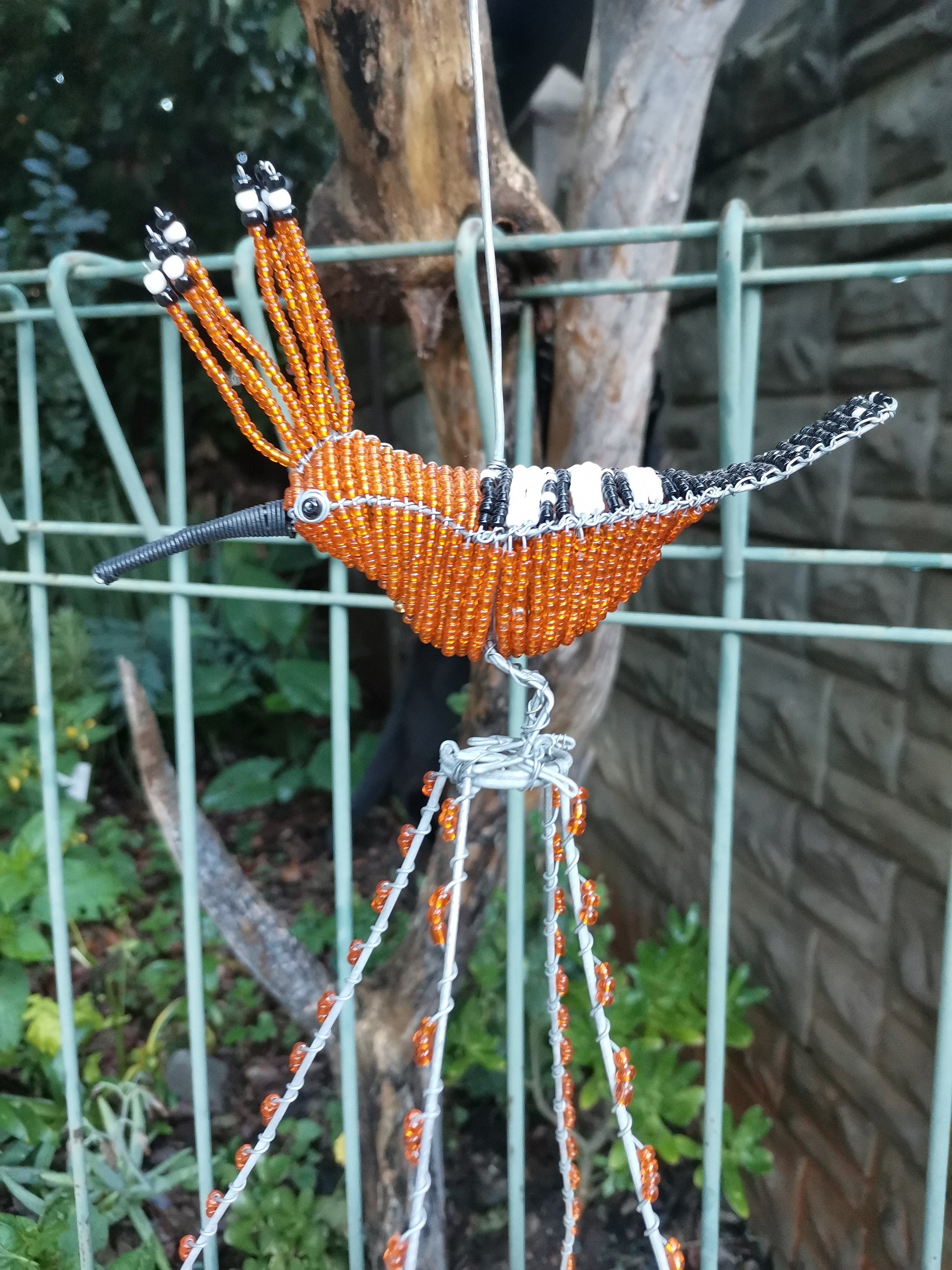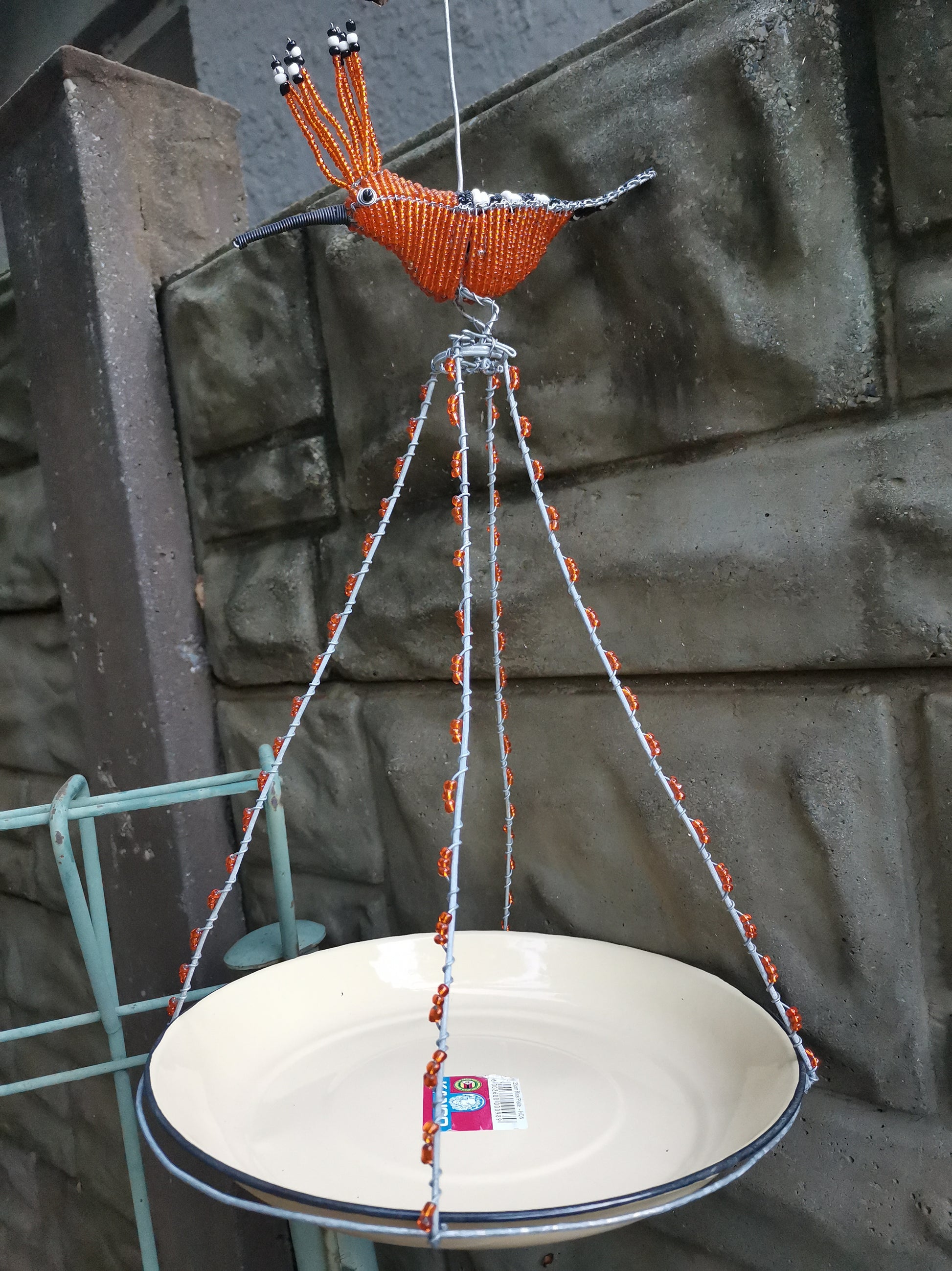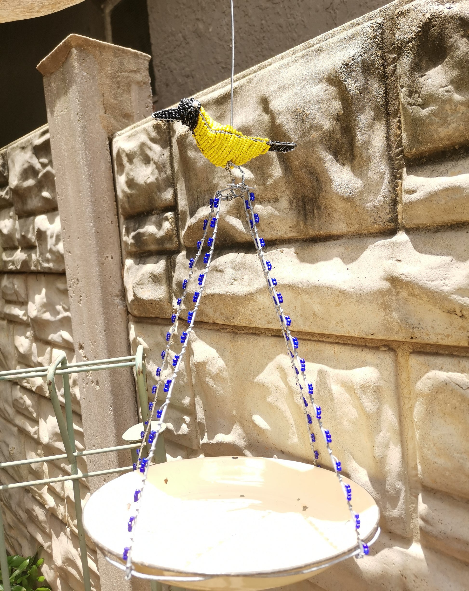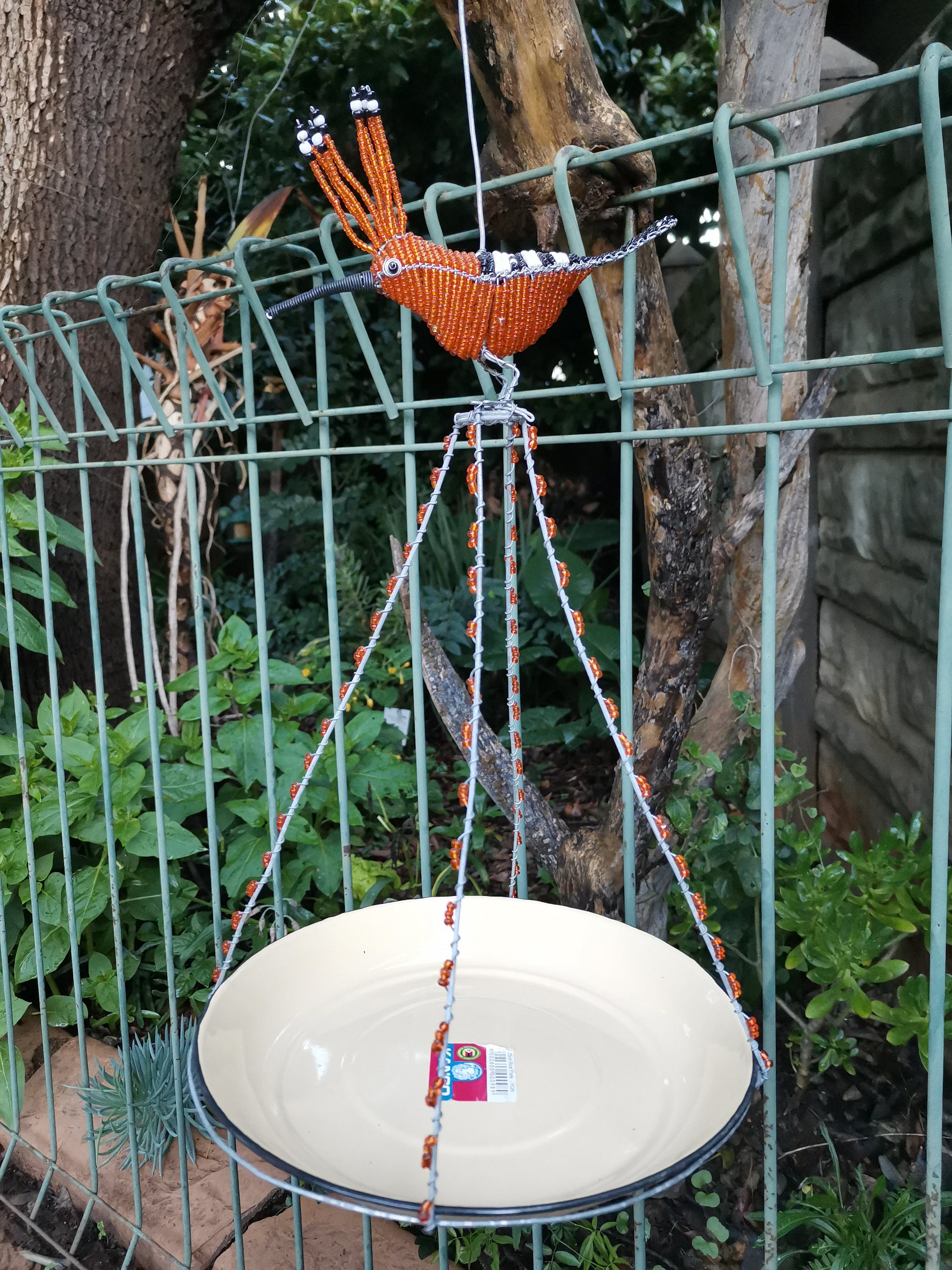 The feeder features a unique and eye-catching design, with intricate beading work in shades colour that mimic the natural colours of the garden. The hoopoe bird perched atop the feeder adds a touch of whimsy and charm, making it a lovely addition to any garden or patio.