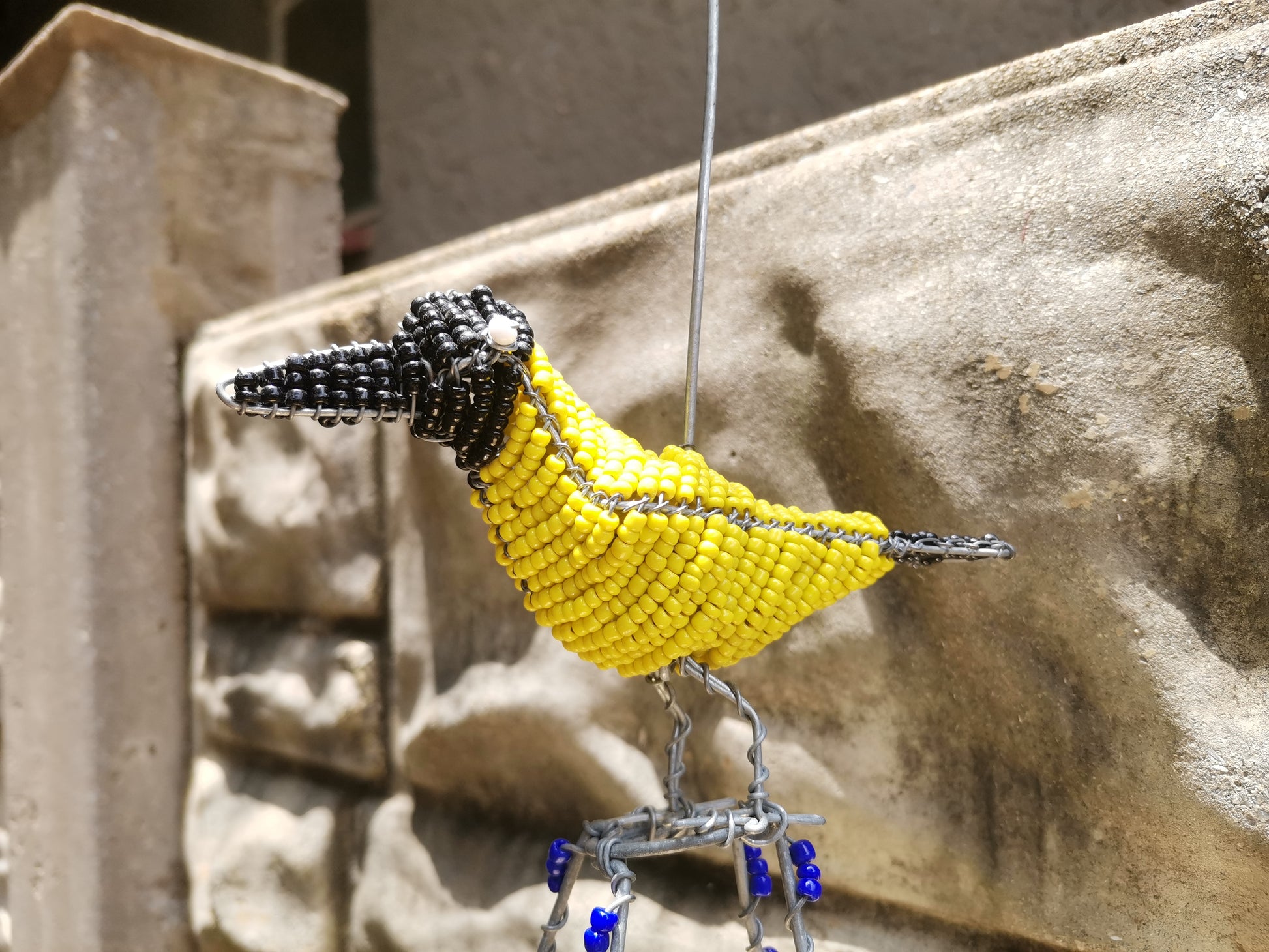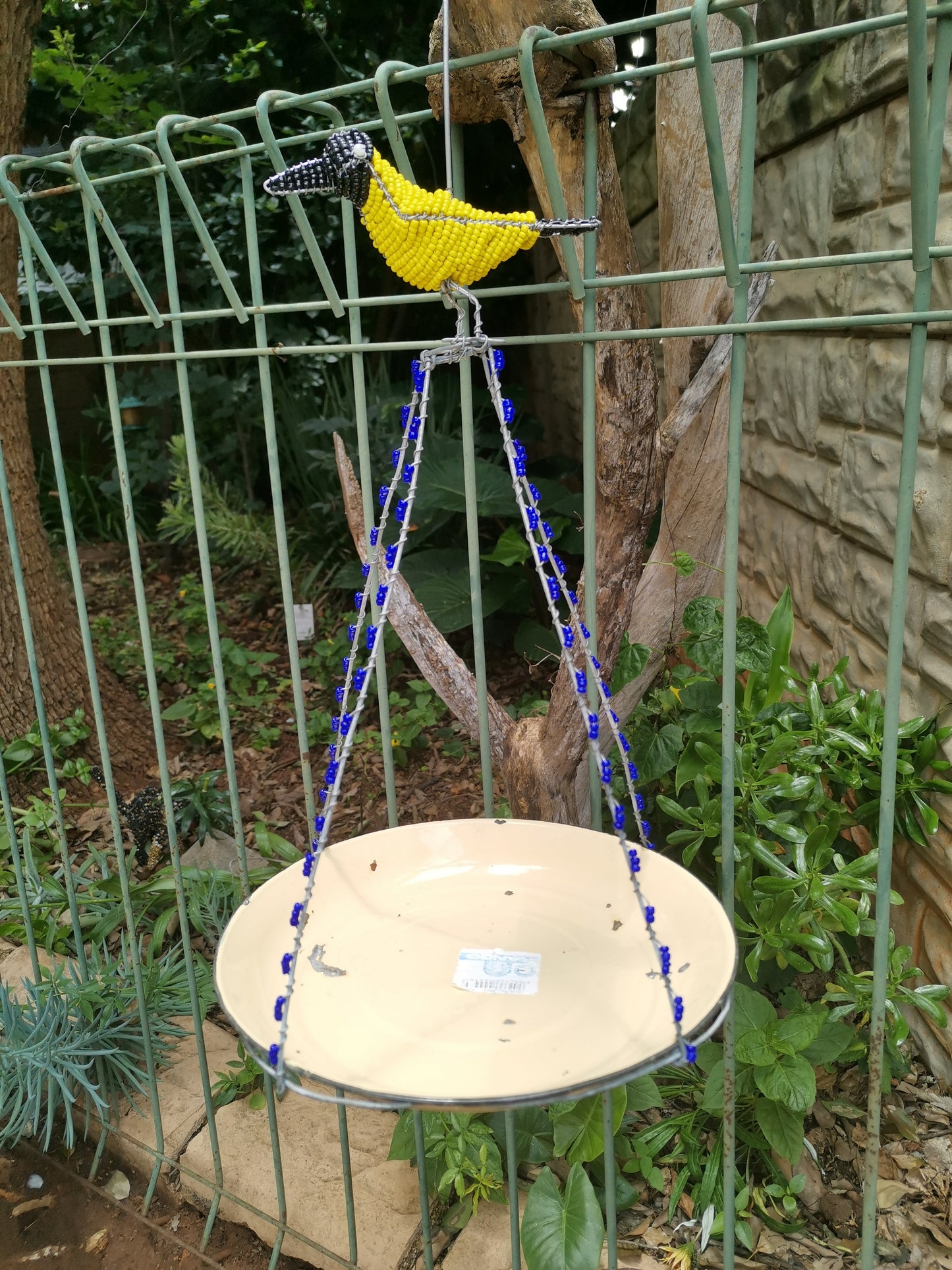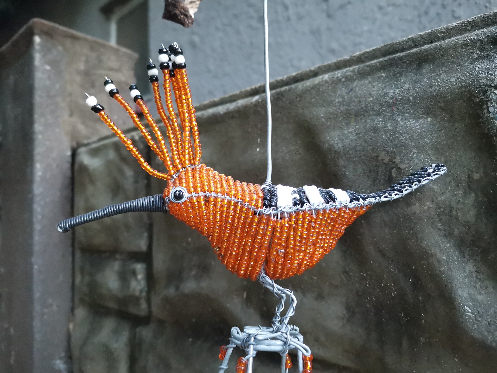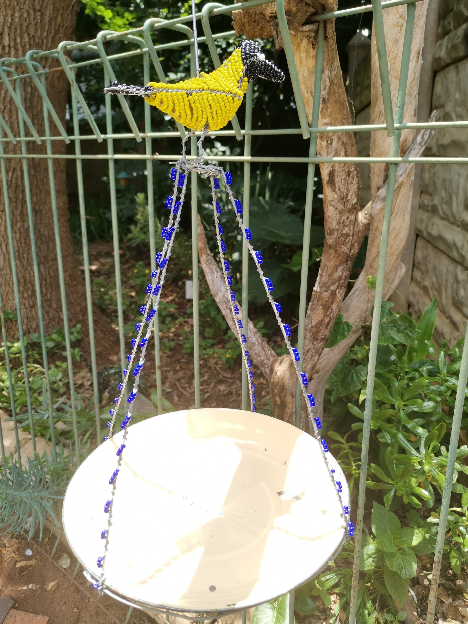 The feeder features a unique and eye-catching design, with intricate beading work in shades colour that mimic the natural colours of the garden. The hoopoe bird perched atop the feeder adds a touch of whimsy and charm, making it a lovely addition to any garden or patio.