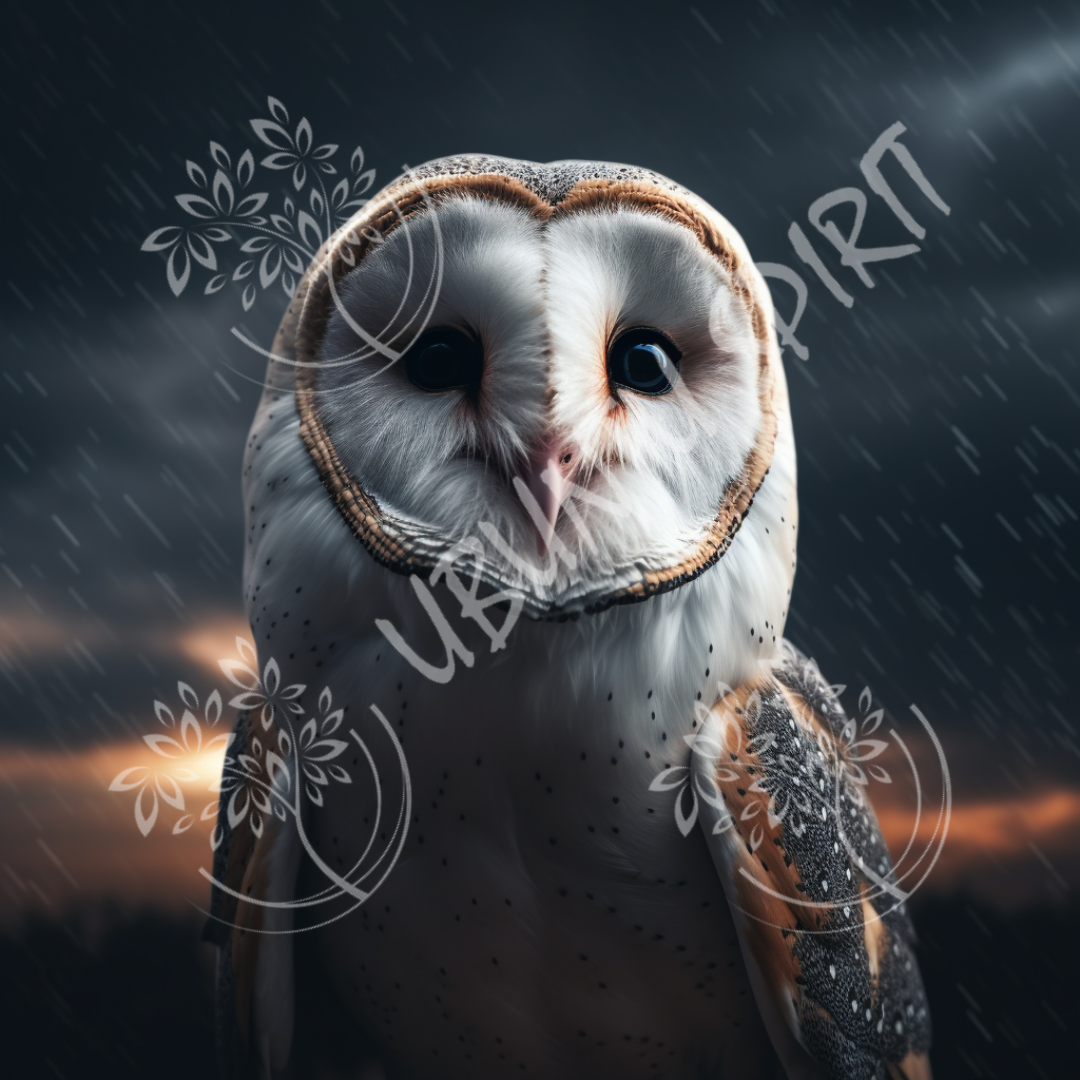 Set of 4 different Barn Owl coasters in a mystic setting.