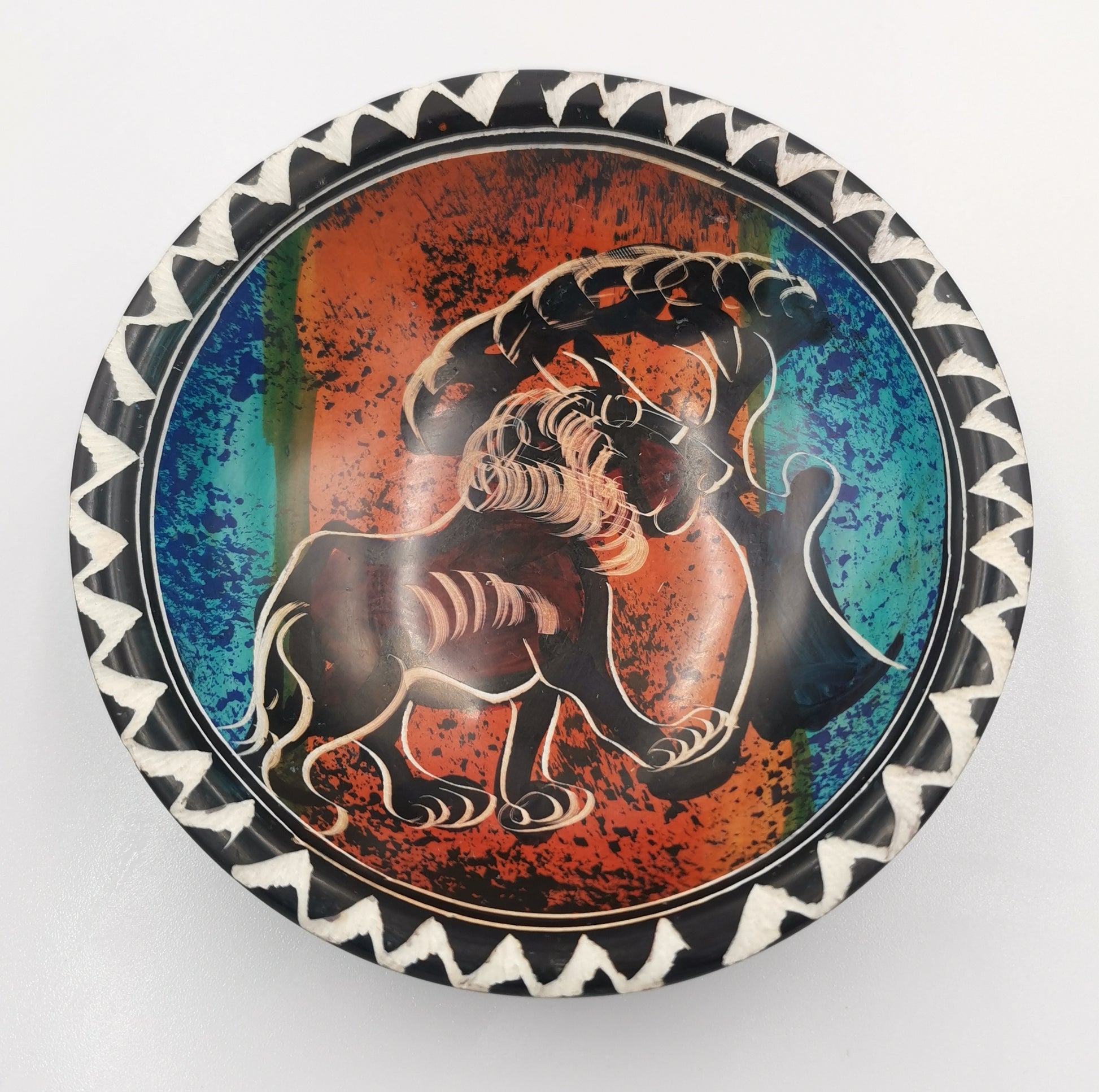 Each bowl is hand carved from soapstone and then painted in Kenya.