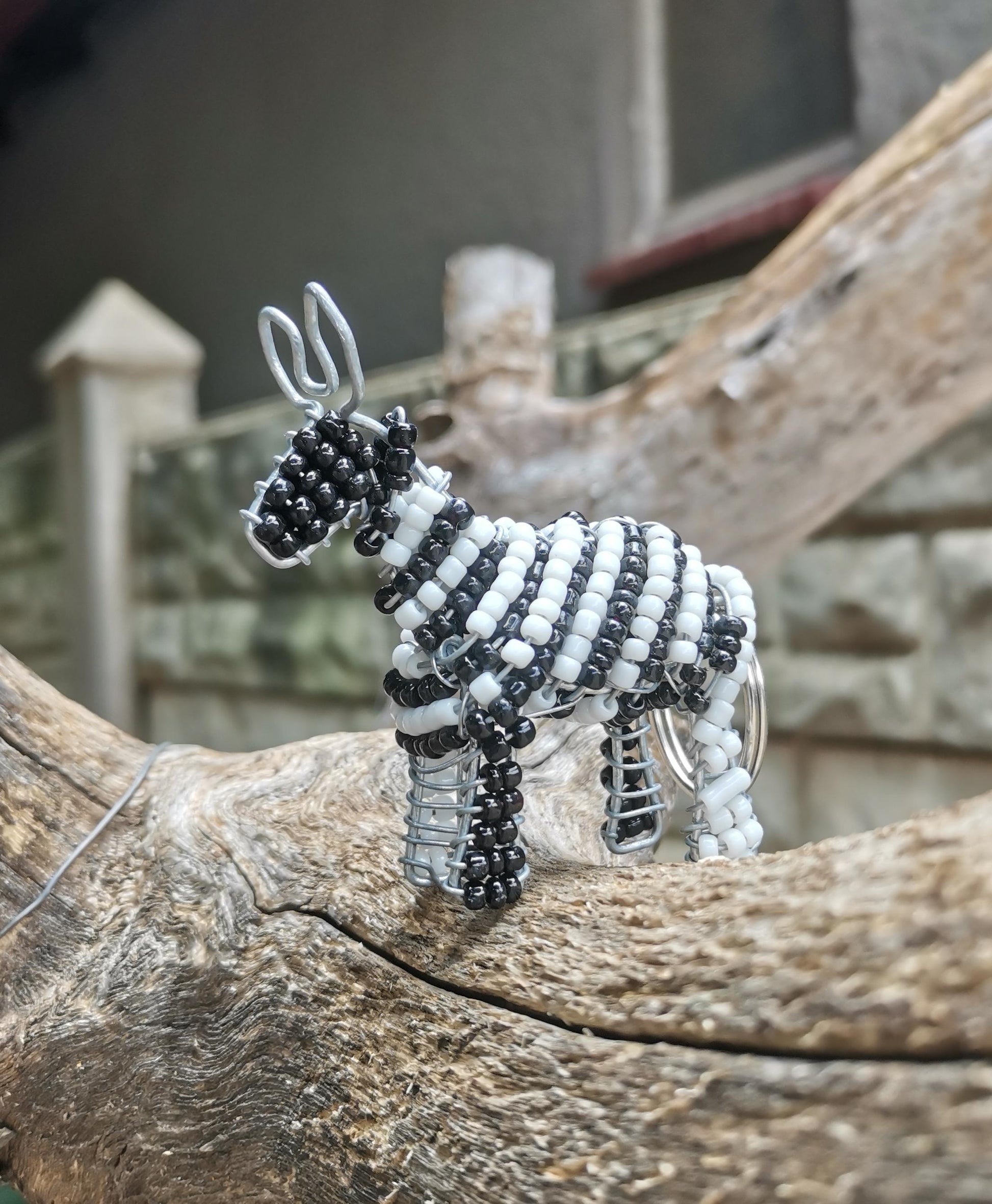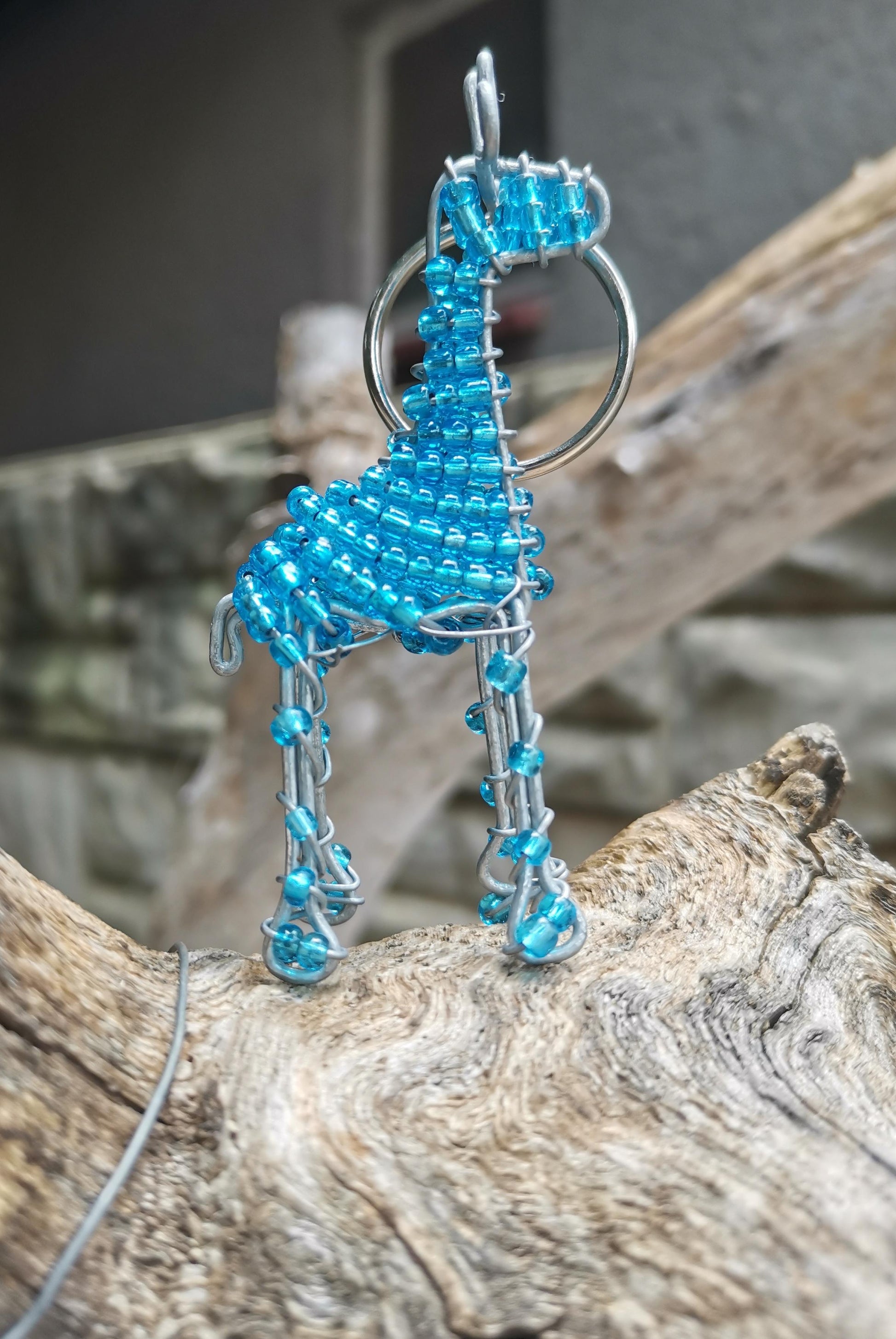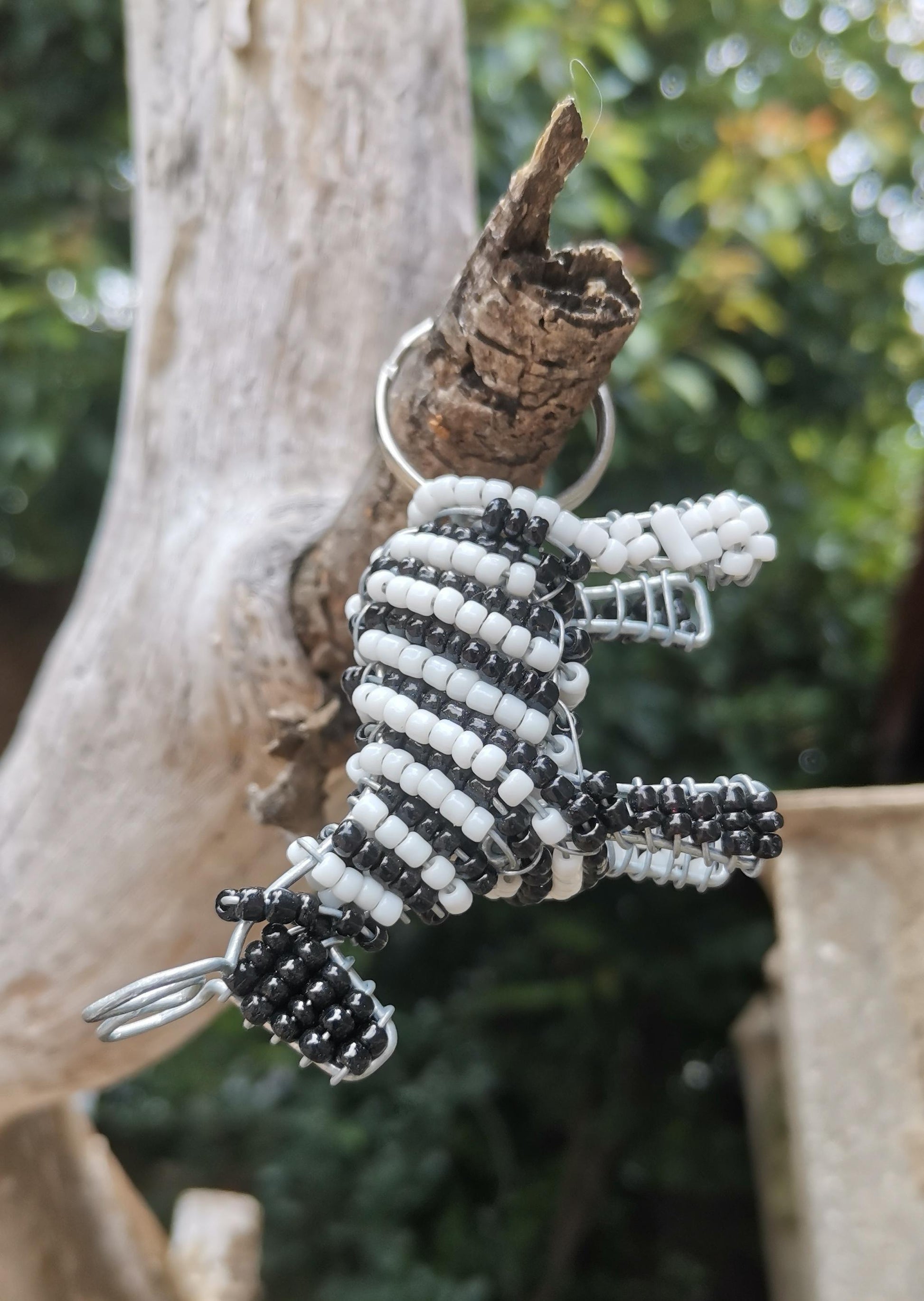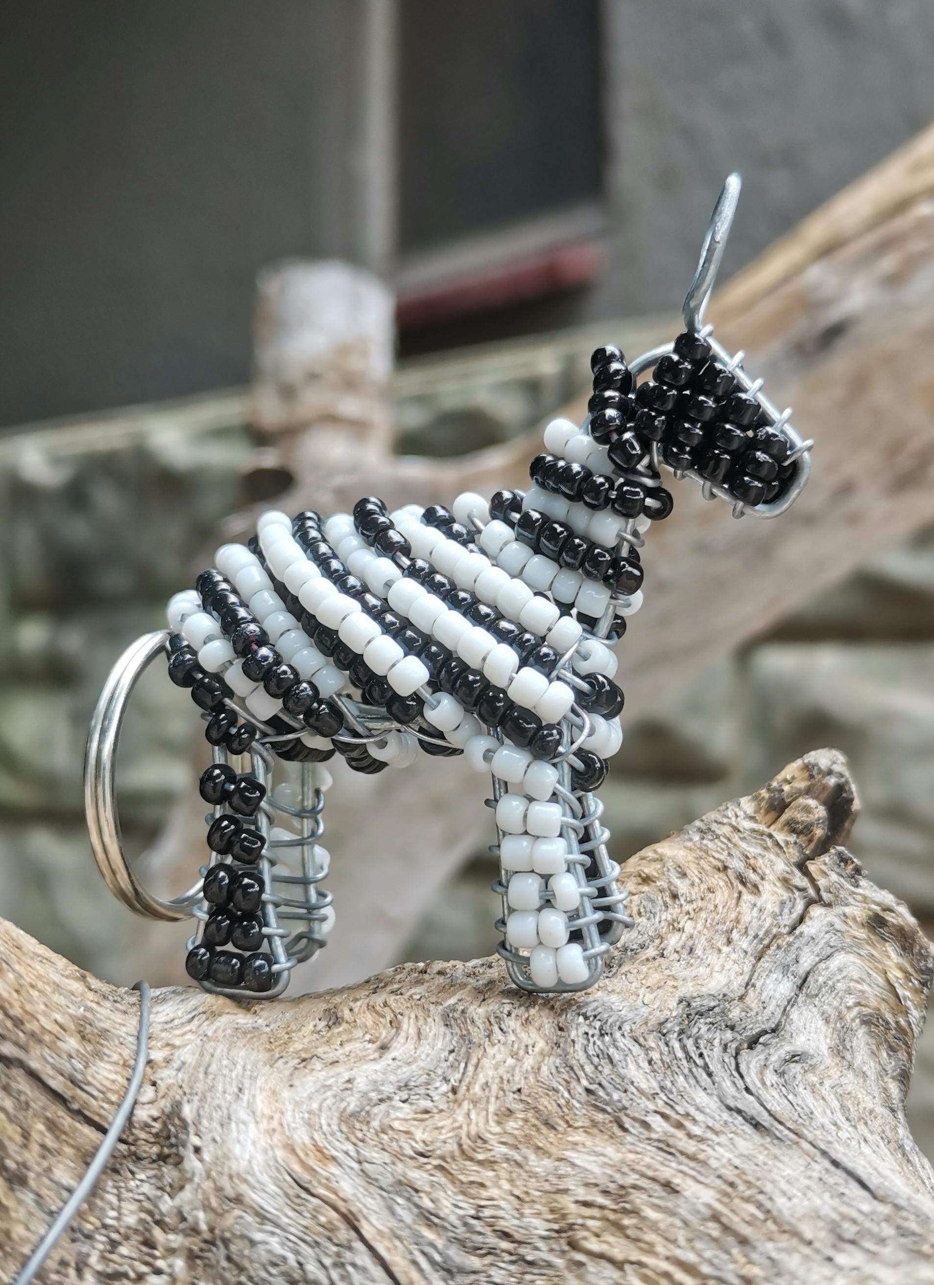 Gorgeous African animal miniature keyrings. Made from wire and beads