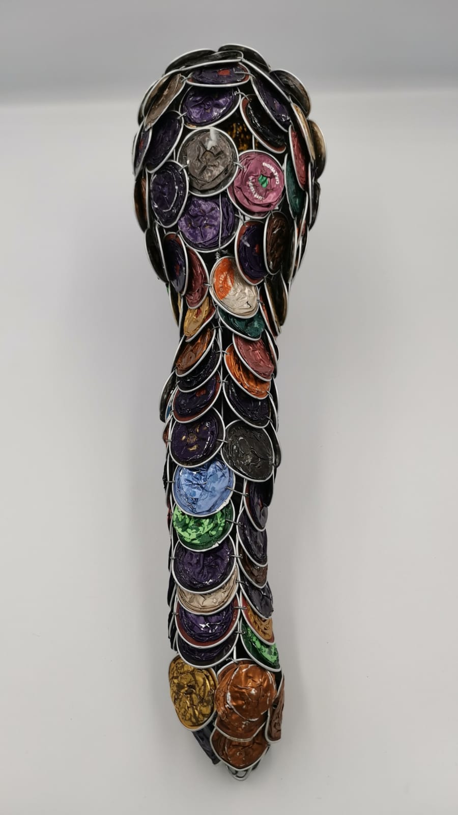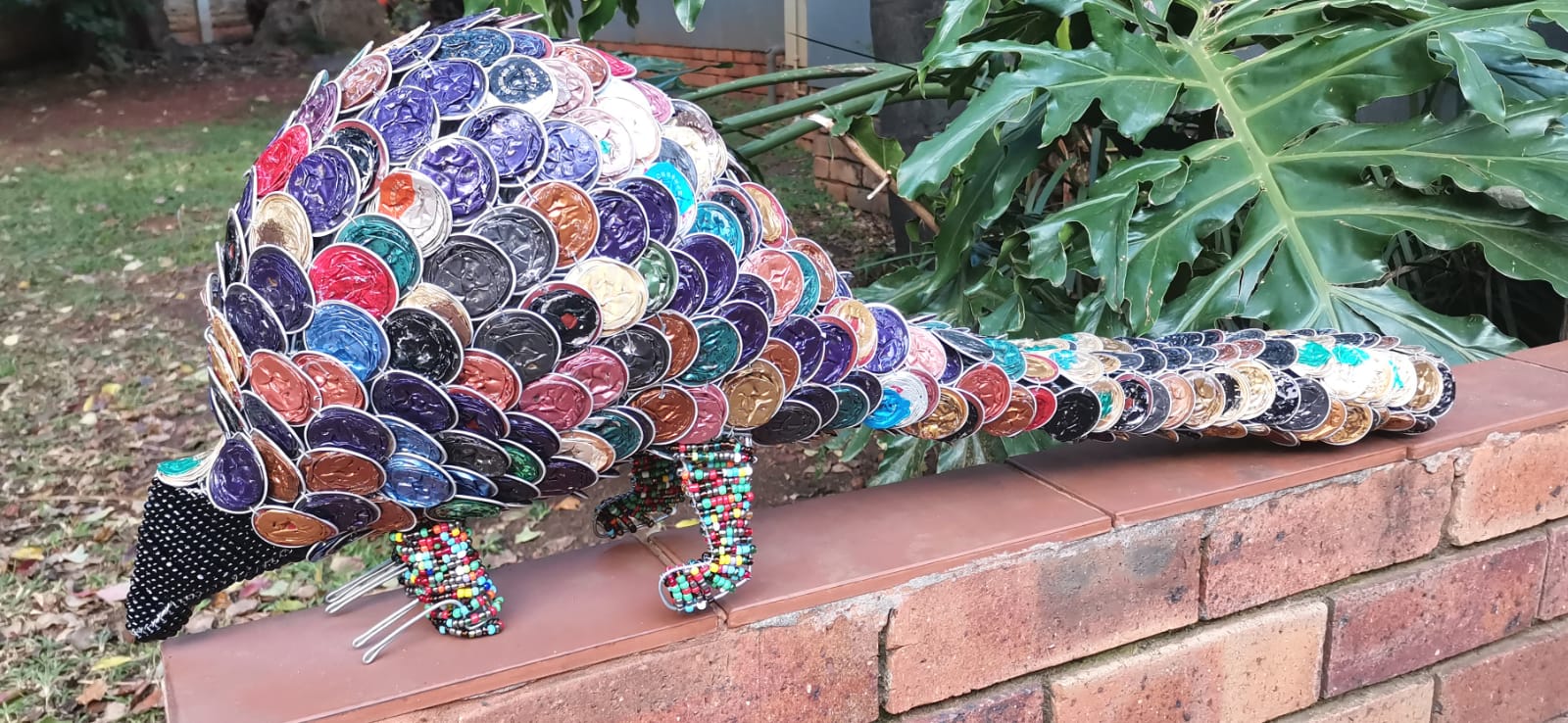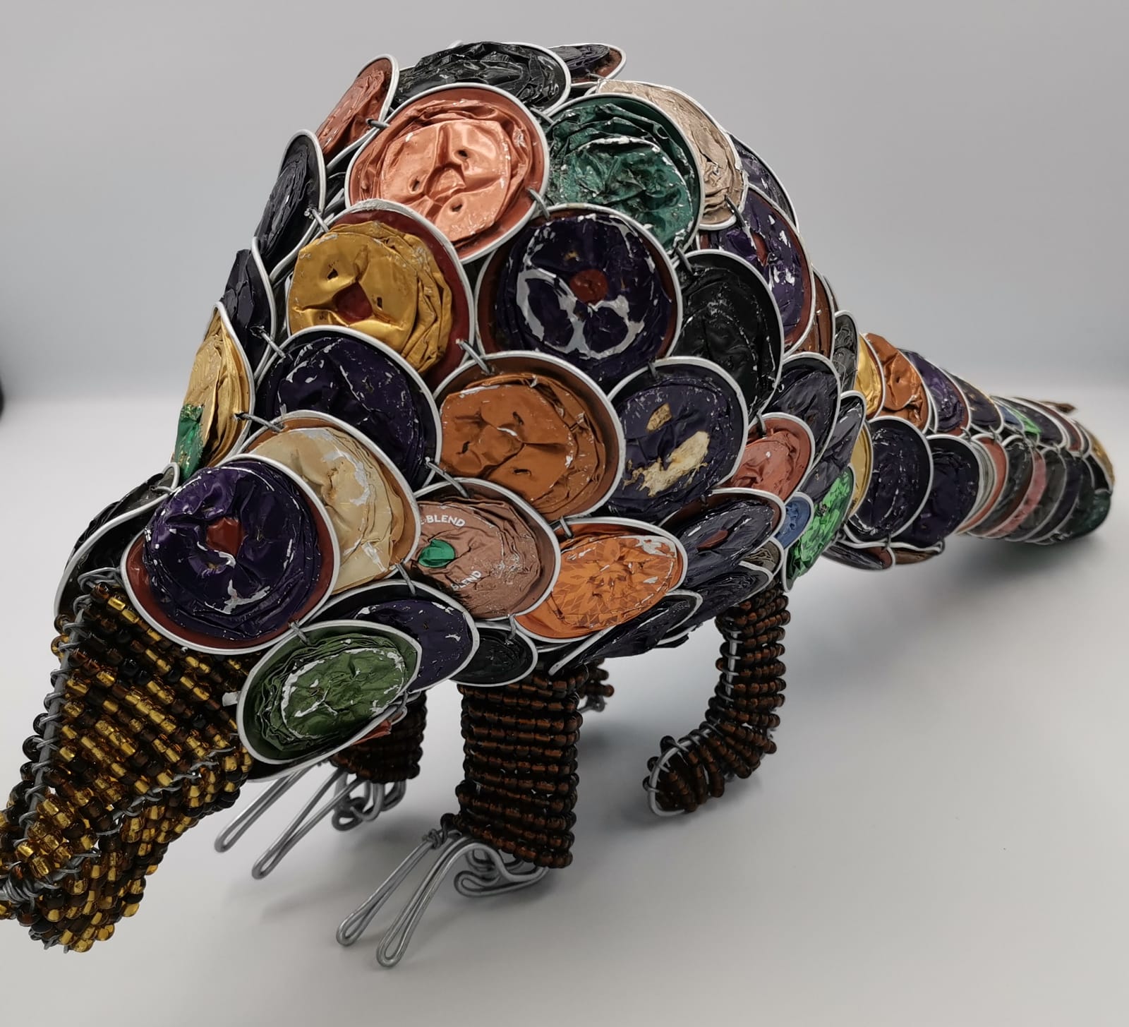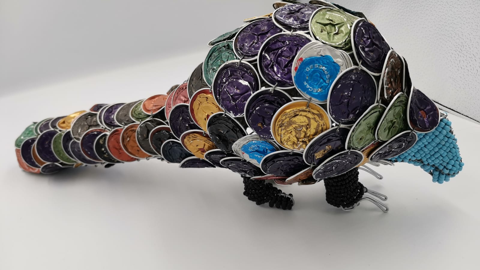 One-of-a-kind, eco-friendly Pangolin made entirely out of recycled coffee pods! This unique creation is not only adorable and full of character but is also a sustainable alternative to traditional toys.