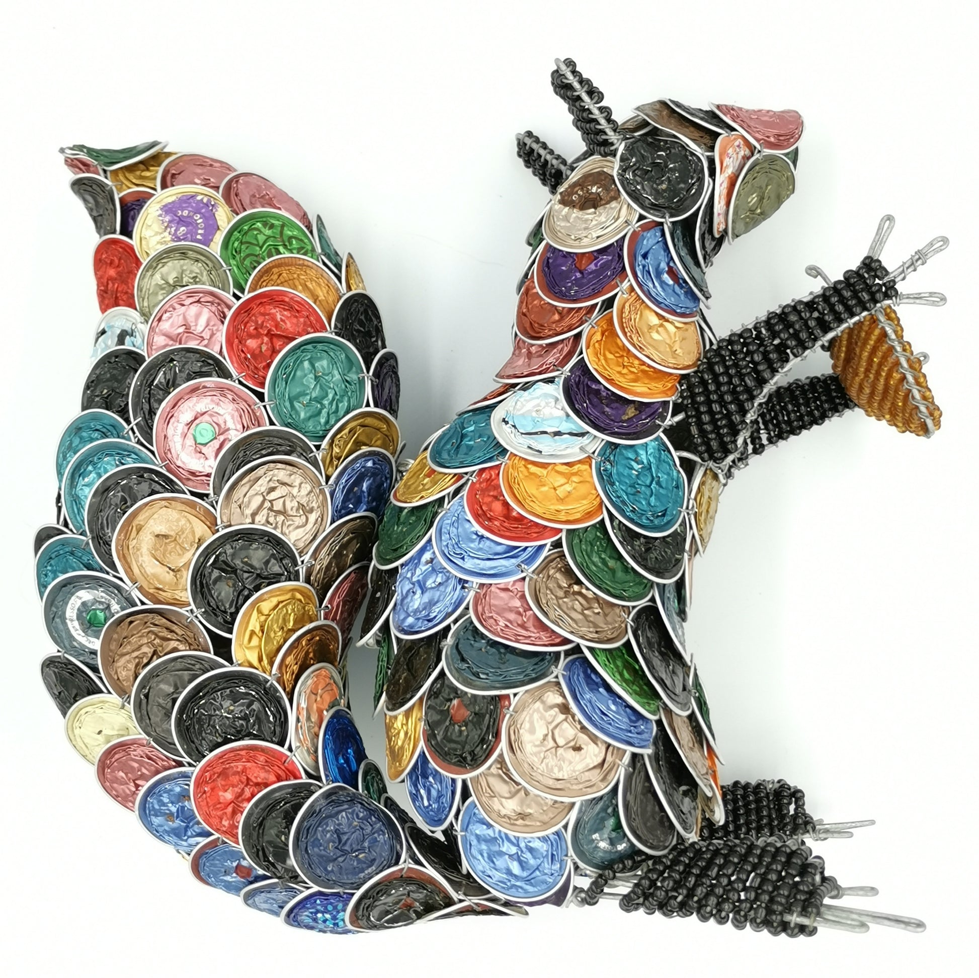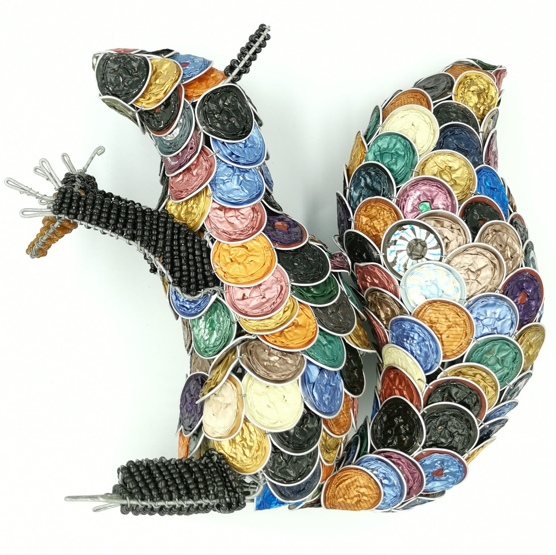 Introducing our unique and eco-friendly squirrel made entirely out of recycled coffee pods! Each one is handcrafted by local talent, making them one-of-a-kind pieces that are not only visually stunning but also sustainable.