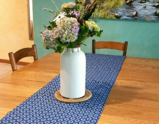 Our Shweshwe table runners are vibrant and made from long-lasting cloth. All our table runners are hand printed from 100 percent cotton and created in a factory near King Williams Town, South Africa.