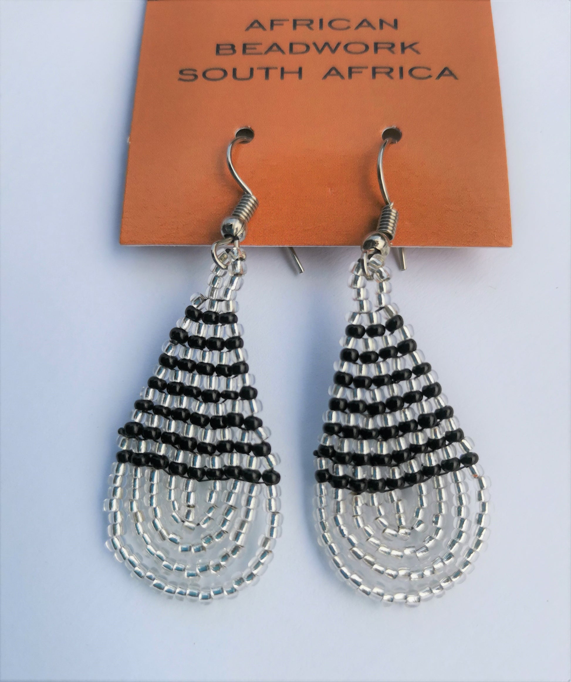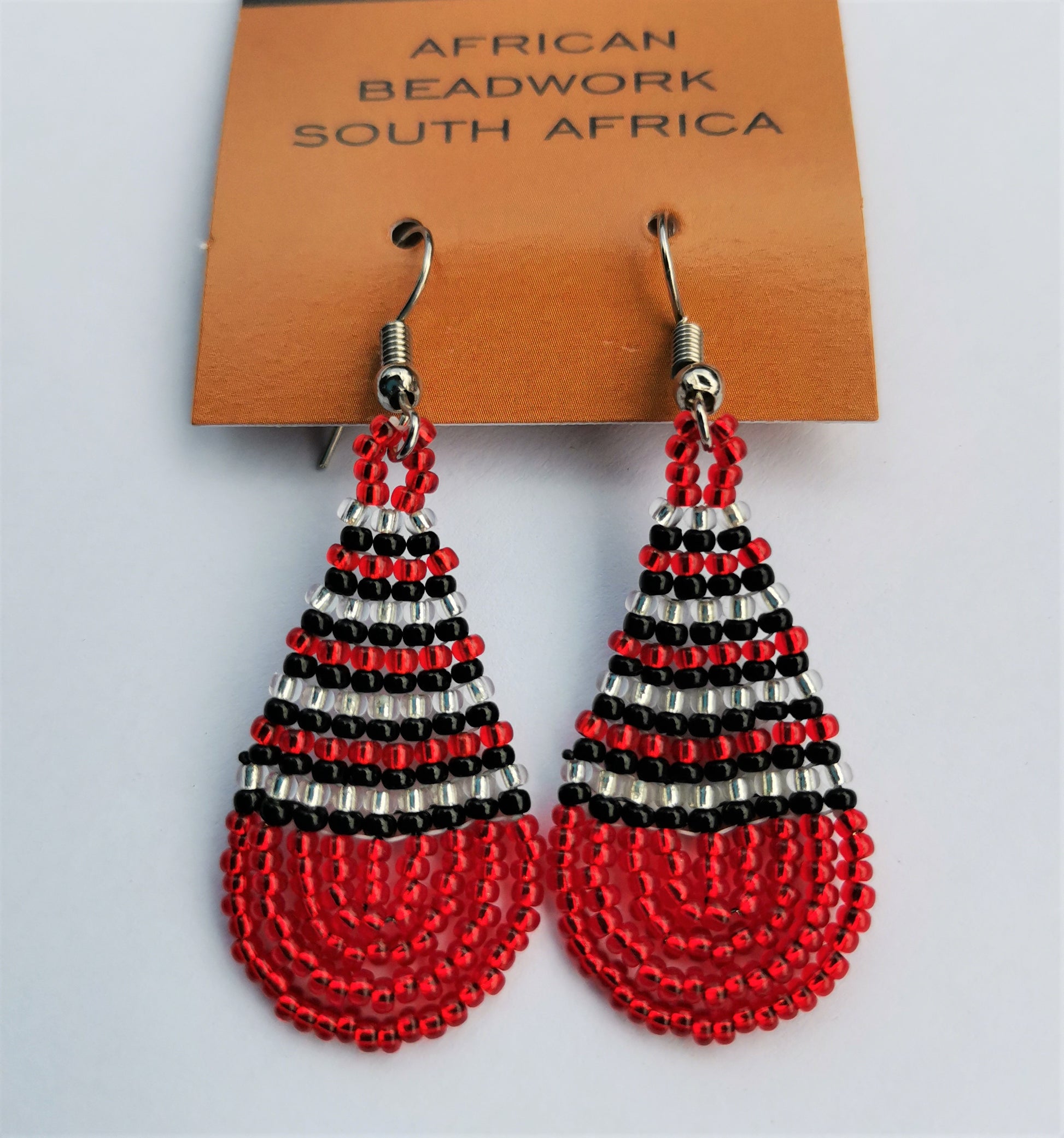 Handmade beaded tear drop earrings made by the rural woman of South Africa.