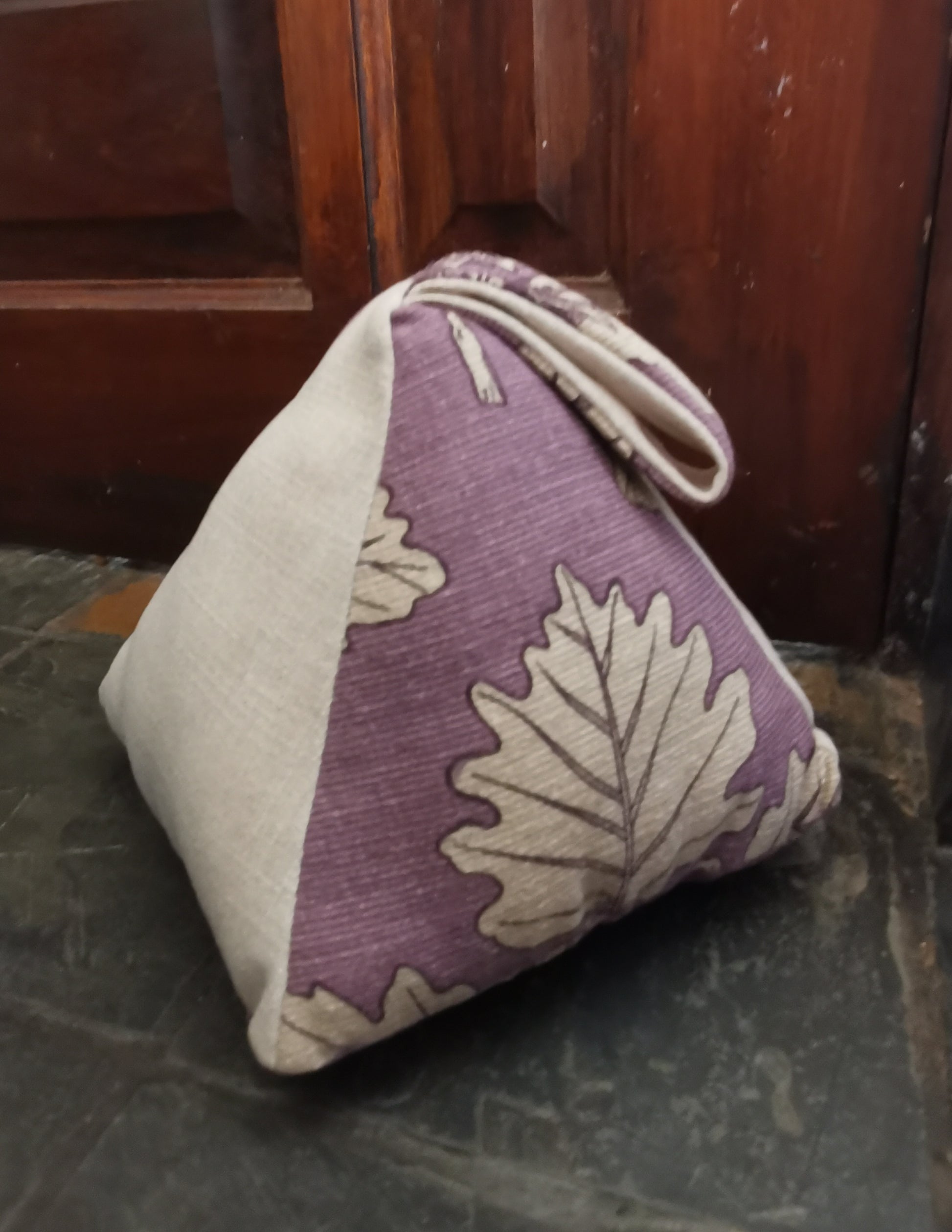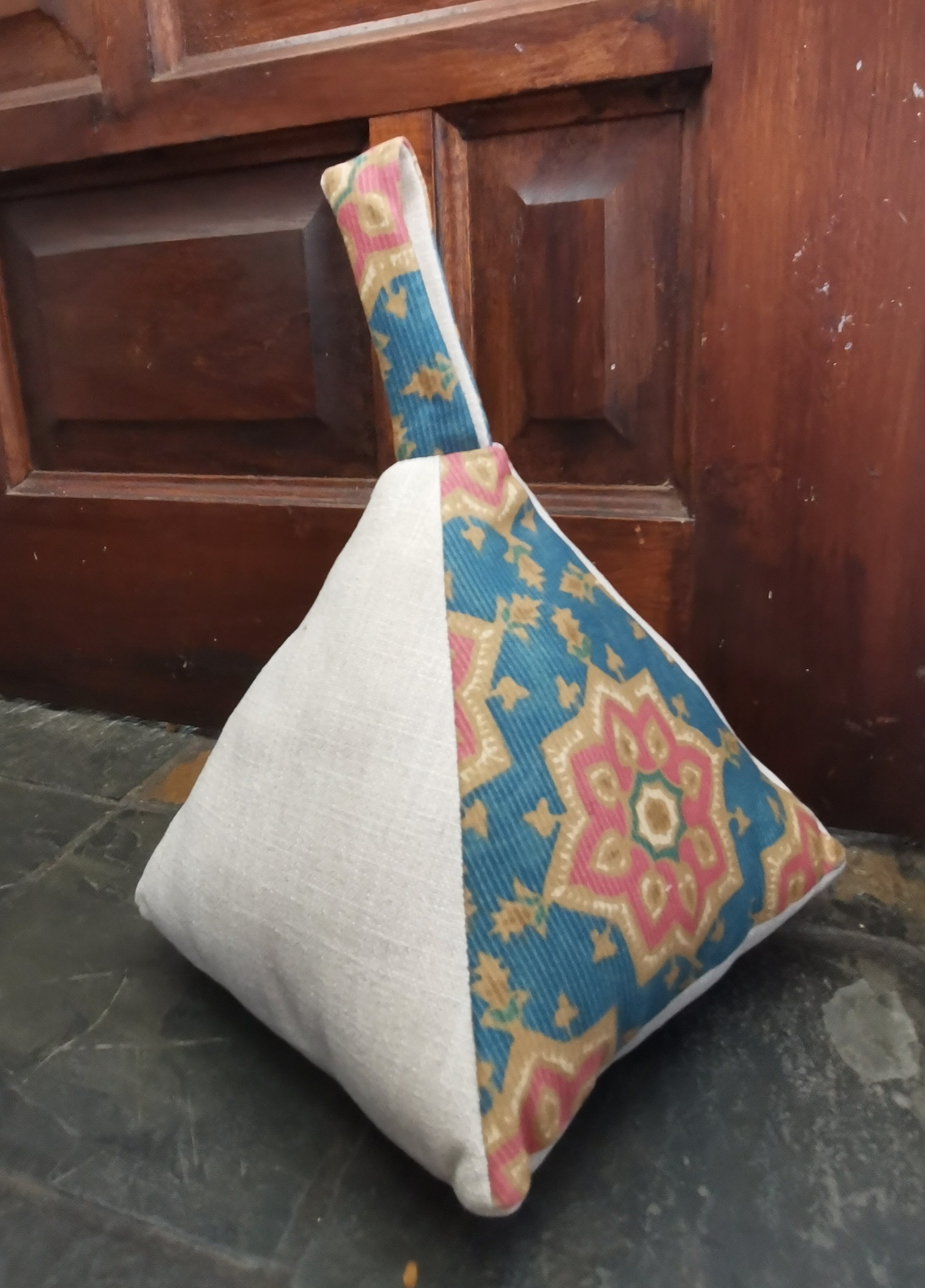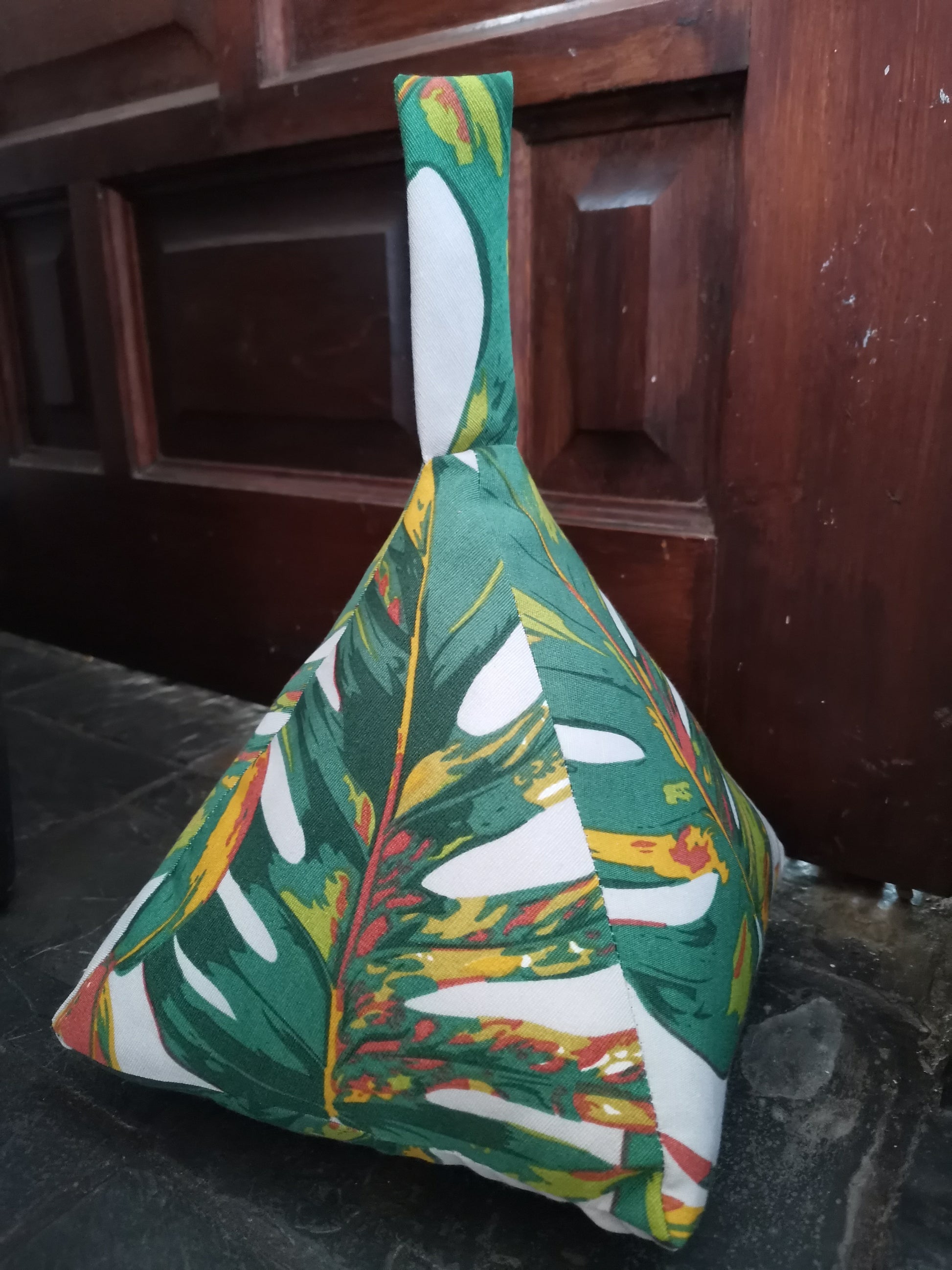 This handmade doorstop is perfect for keeping any door open, no matter how heavy. The outer material is carefully crafted to provide both durability and aesthetic appeal. The inner filling is a combination of sand and stuffing, which not only adds weight to the doorstop, but also provides a soft cushion to prevent any scratches or scuffs on the floor. The triangle shape is not only functional, but also adds a unique touch to any room. Plus, since it's handmade, you can be sure that each doorstop is one-of-a-kind and made with care.