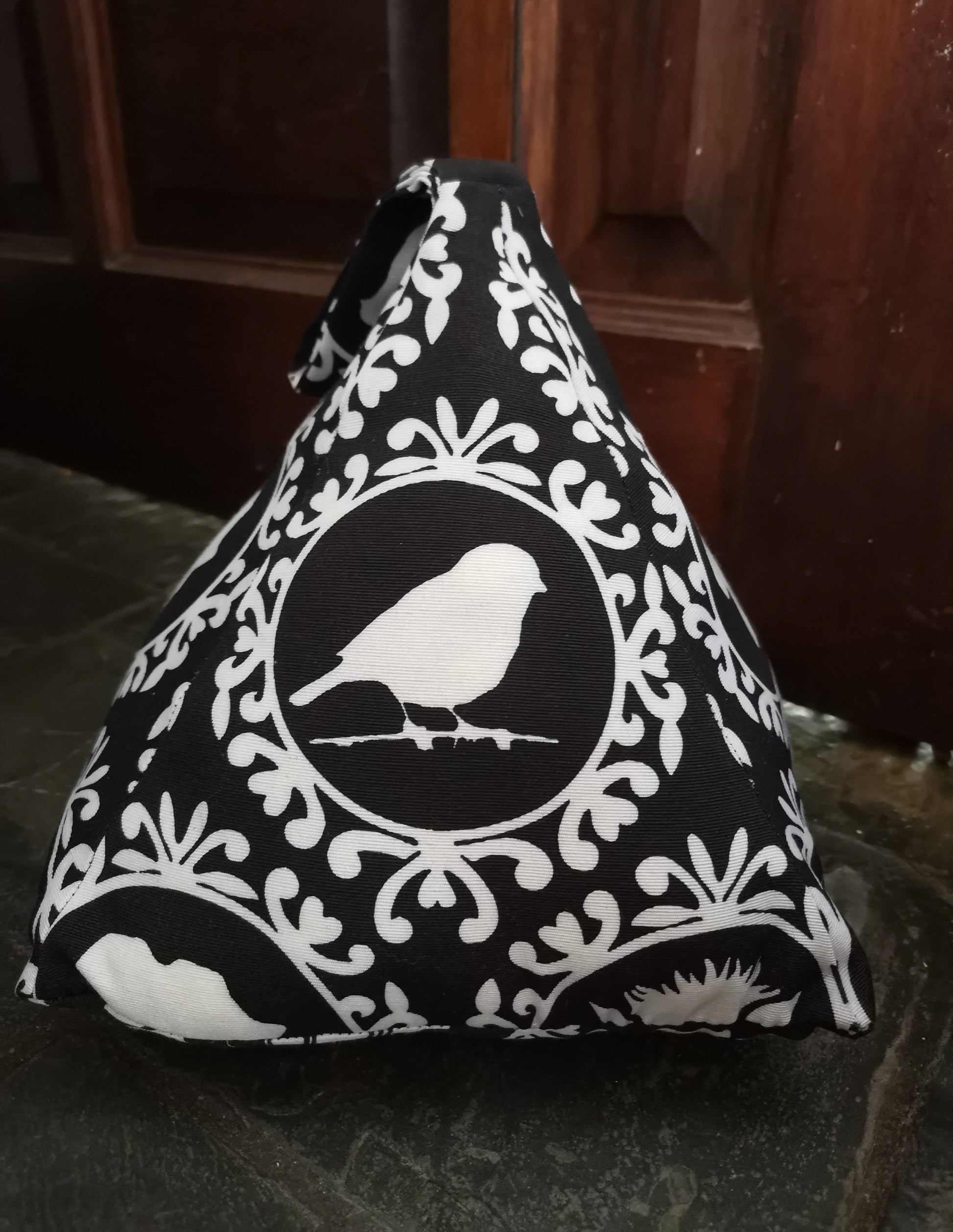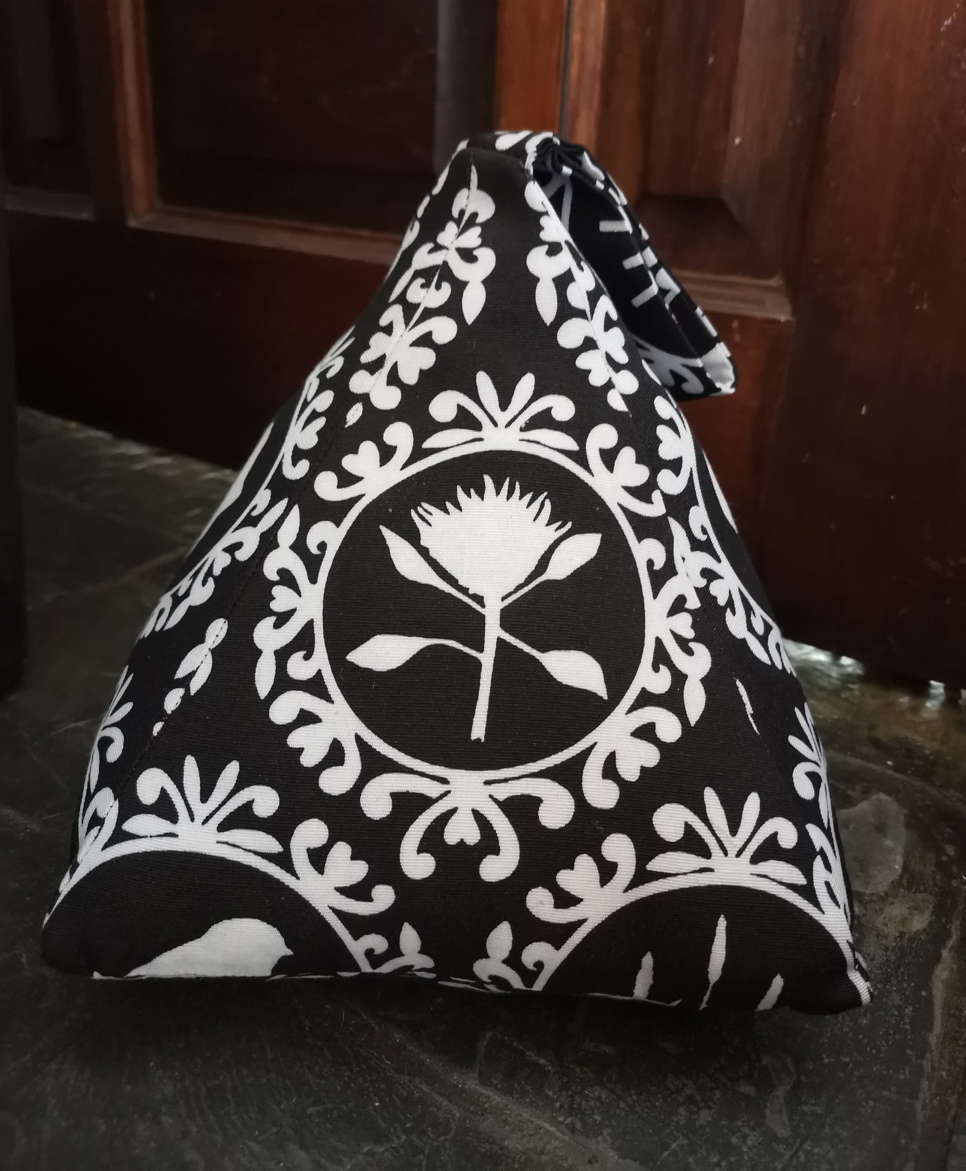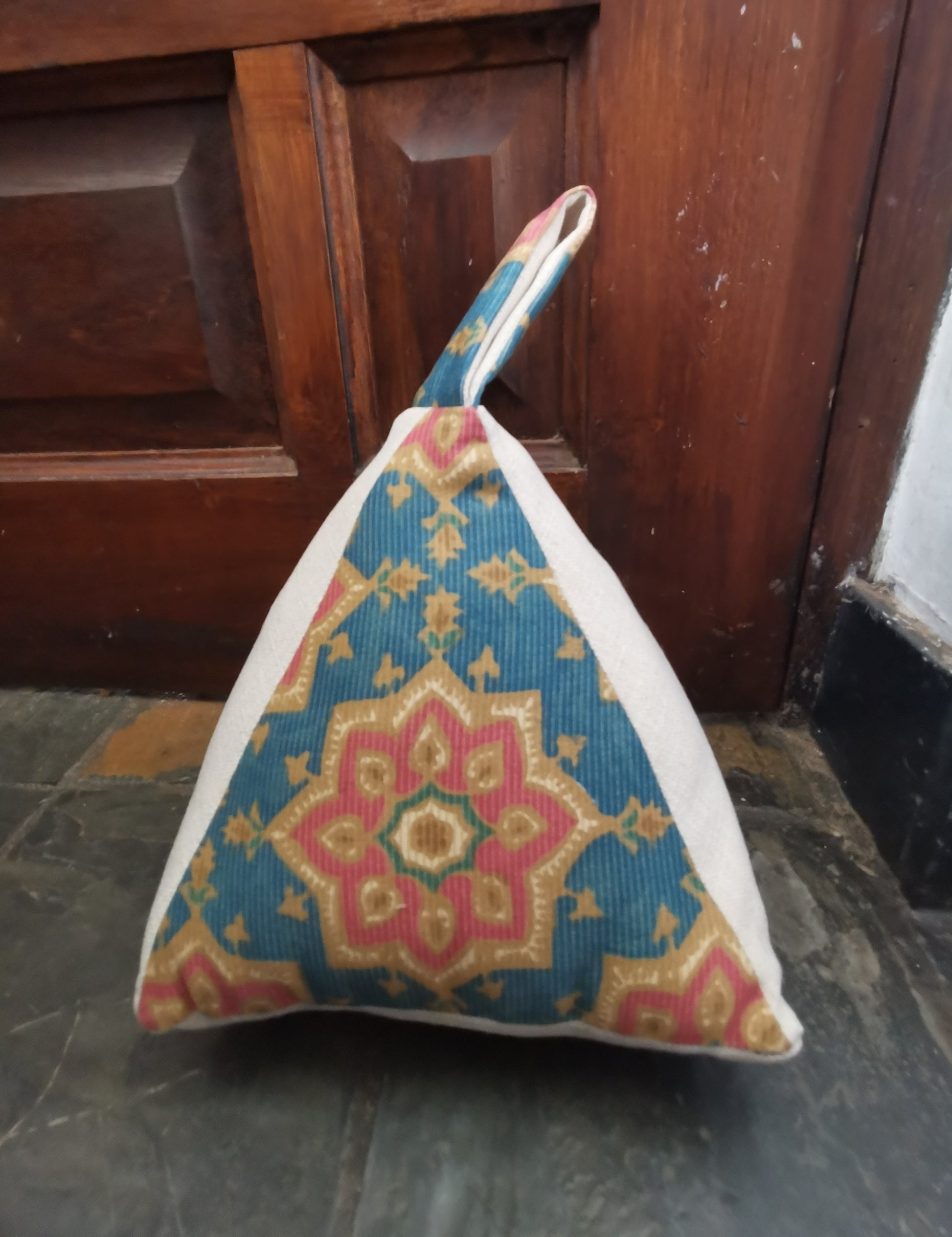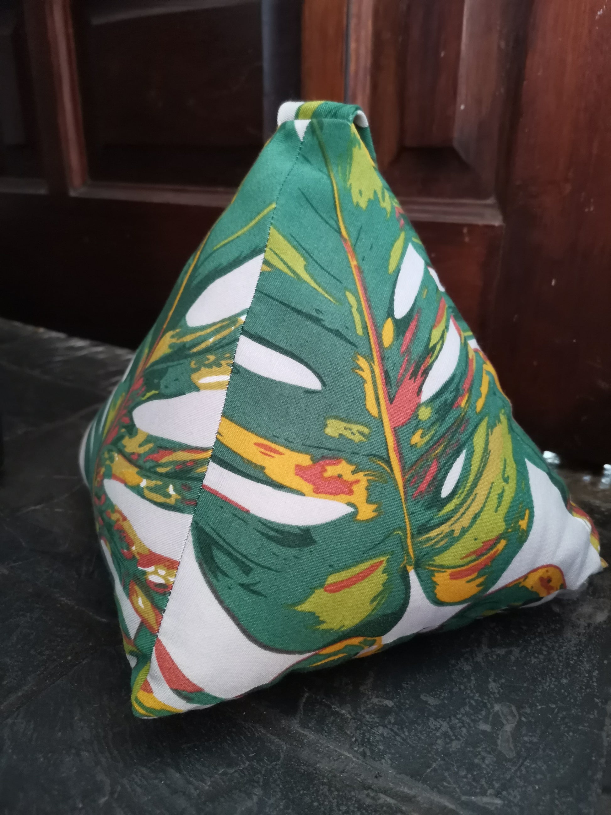 This handmade doorstop is perfect for keeping any door open, no matter how heavy. The outer material is carefully crafted to provide both durability and aesthetic appeal. The inner filling is a combination of sand and stuffing, which not only adds weight to the doorstop, but also provides a soft cushion to prevent any scratches or scuffs on the floor. The triangle shape is not only functional, but also adds a unique touch to any room. Plus, since it's handmade, you can be sure that each doorstop is one-of-a-kind and made with care.