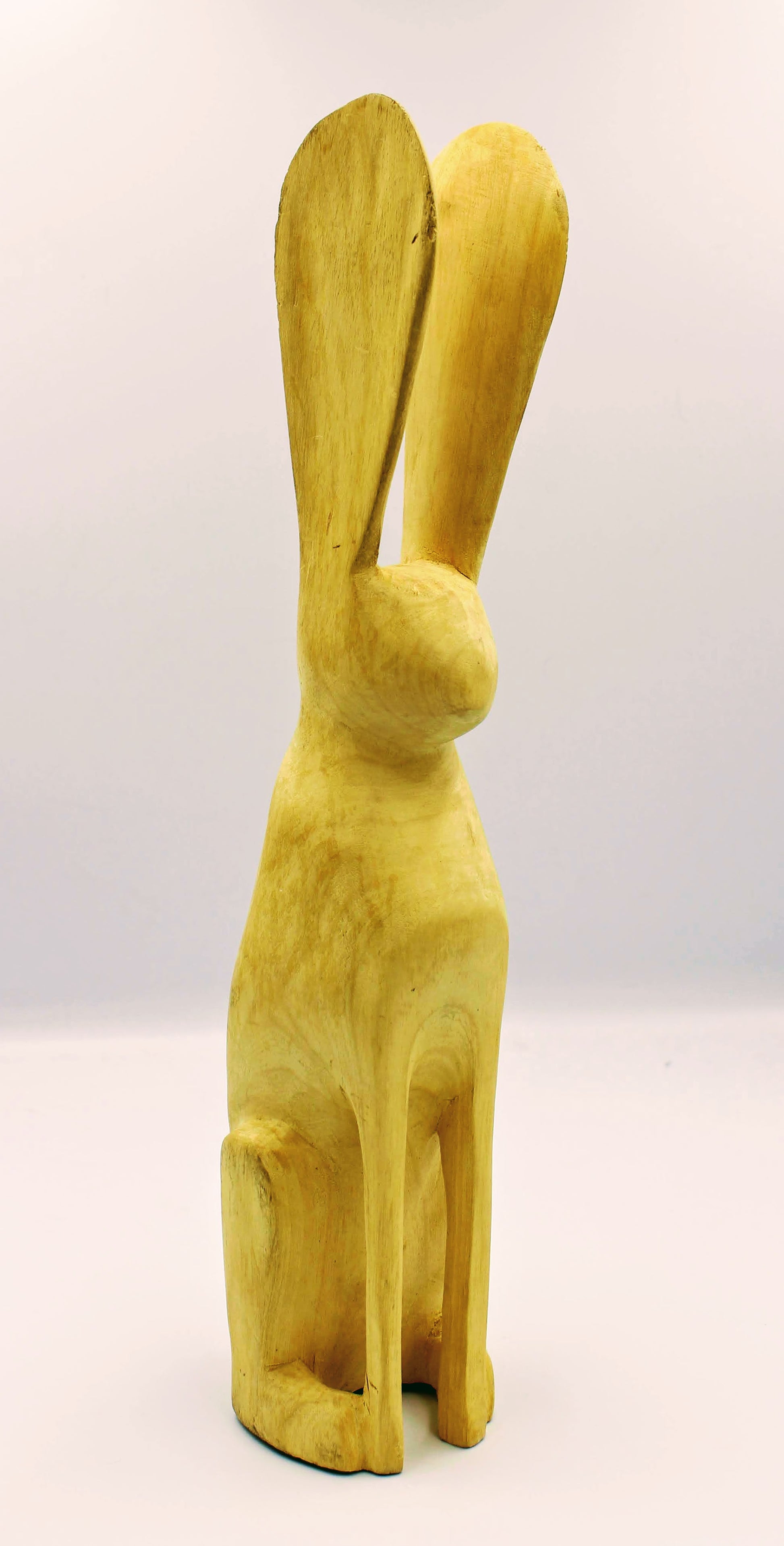 We offer a delightful collection of hand-carved wooden bunnies and rabbits, available in both upright and sitting positions. Each bunny is meticulously crafted by skilled artisans, resulting in a unique and one-of-a-kind piece. The natural wood marks and slight discolouration only add to the charm and character of these adorable bunnies. Whether you're a collector, an animal lover, or simply looking for a charming addition to your home décor, these hand-carved wooden bunnies are sure to bring a smile to your face and add warmth to any space.