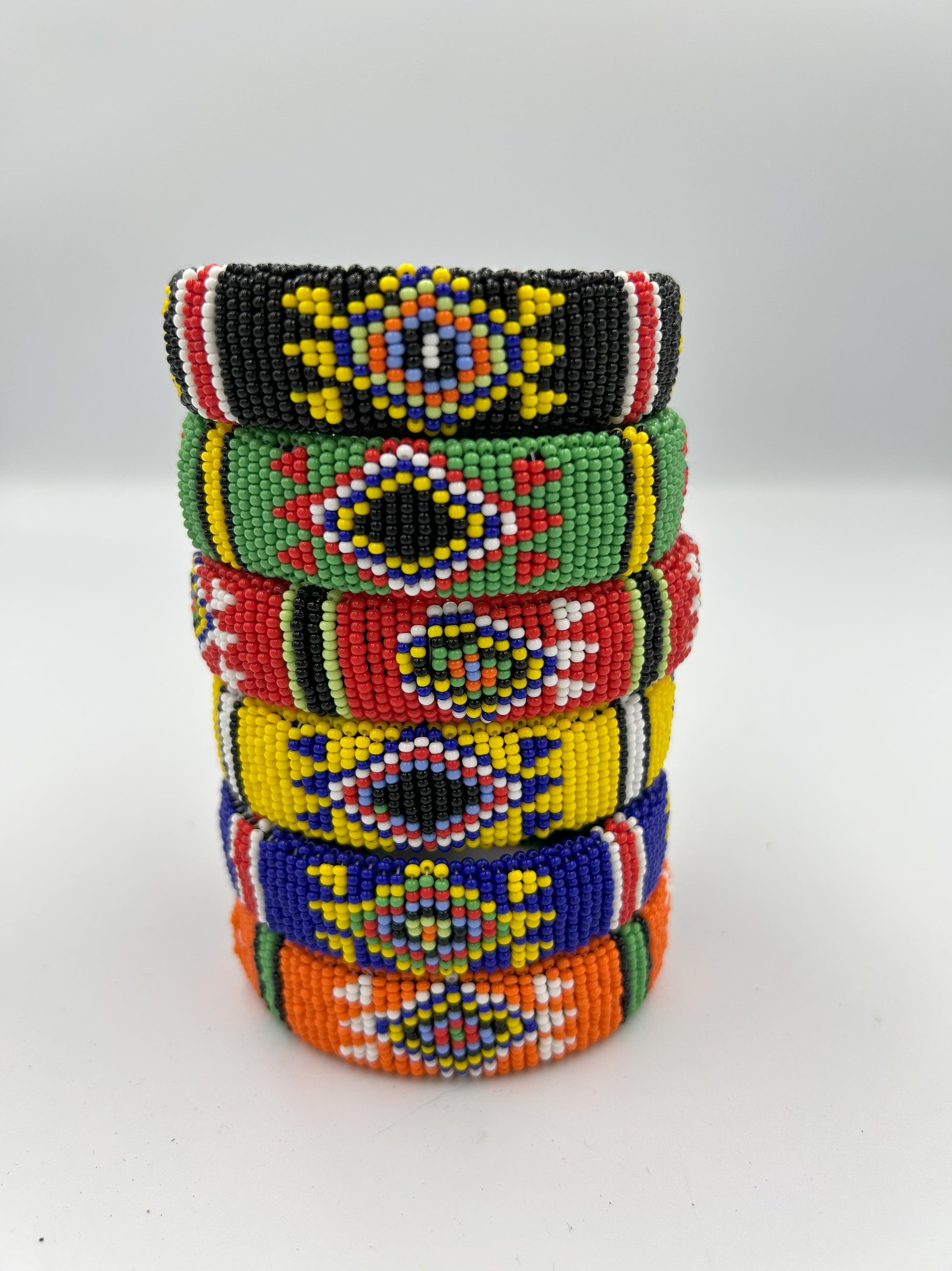 The Beaded Zulu Bangles, a stunning addition to your accessory collection! These beautifully handcrafted bangles are made in the traditional Zulu style, originating from South Africa.